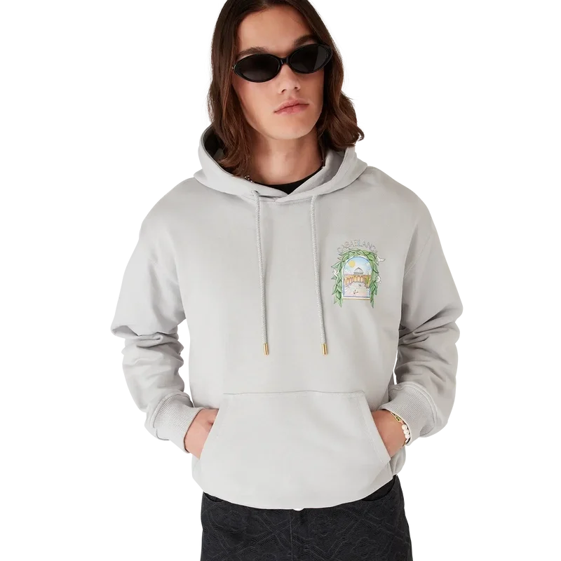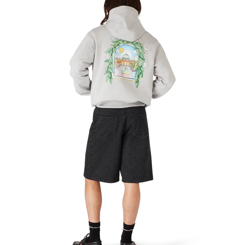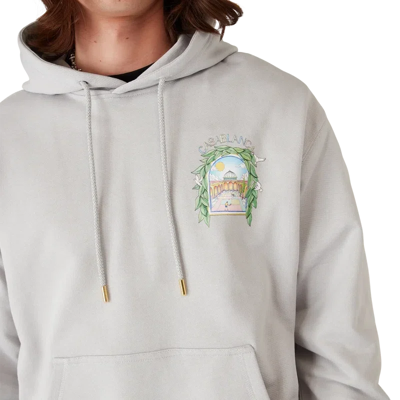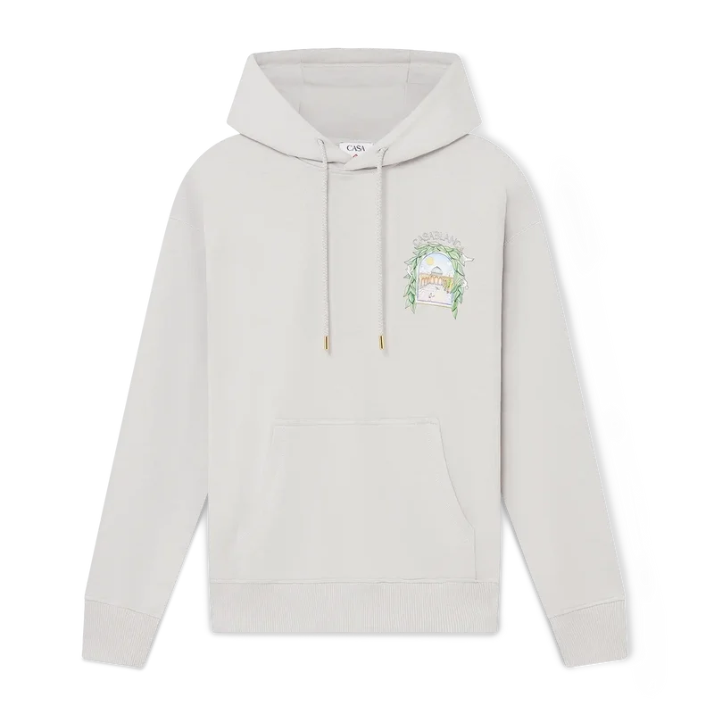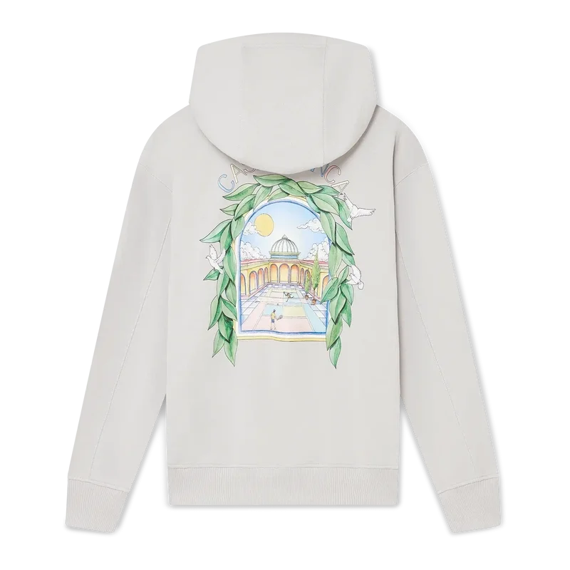 Das Casa L’arche Kapuzensweatshirt ist ein raffiniertes, bedrucktes Langarm-Design mit dem saisonalen Kunstwerk des Hauses und Designelementen wie dem Bogen, der Natur, der Architektur und dem Tennis.