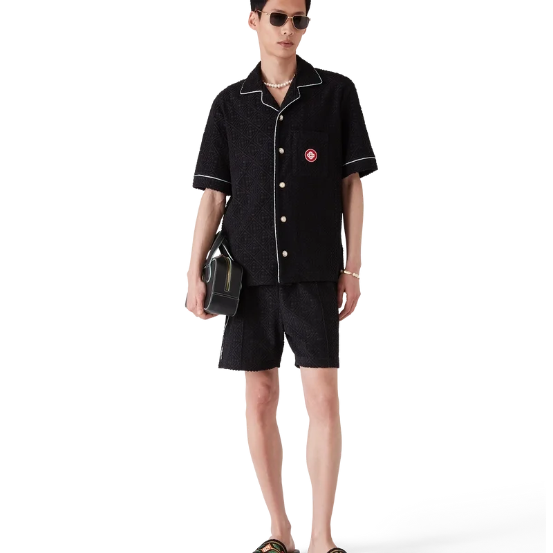 Monogram-Jacquard-Frottee-Hemd mit kurzen Ärmeln