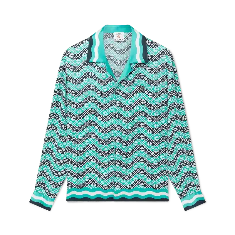 Monogram Wave Langarm-Seidenhemd
