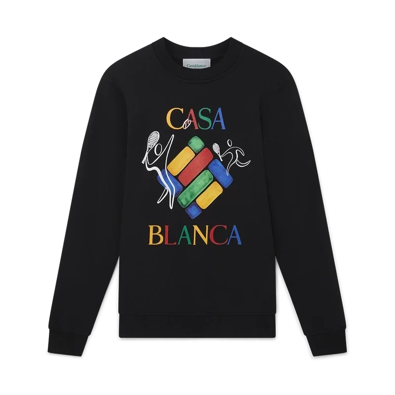 Das „Players Diamond“ Sweatshirt aus Bio-Baumwolle mit Siebdruck ziert ein saisonales Motiv aus der exklusiven Nordstrom-Kollektion, die sich um moderne, vom Tennis inspirierte Athleisure-Mode dreht. Es verfügt über einen klassischen Rundhalsausschnitt, lange Ärmel und ein „Casablanca Paris“-Markenlabel und ist auf eine lockere Passform ausgelegt.