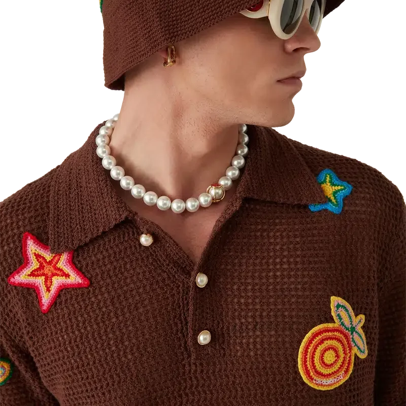 Polohemd mit Häkelmotiv