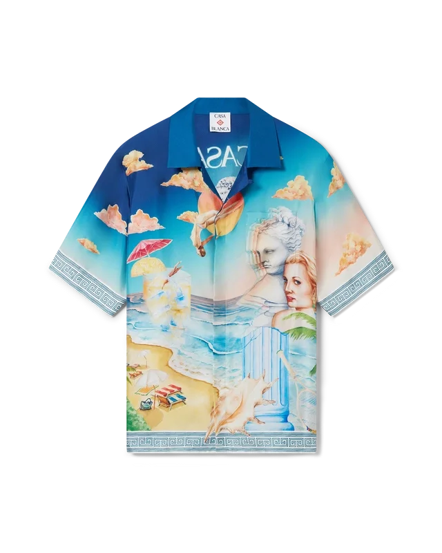 Das Seidenhemd „Le Plongeon“ ist ein kurzärmeliges Modell mit durchgehendem Druck, gefertigt aus Seidentwill mit dem saisonalen Print des Hauses. Es ist inspiriert von der fortwährenden Auseinandersetzung mit der klassischen Schönheit und dem zeitgenössischen Charme des antiken Griechenlands und integriert die Designelemente des Hauses. Abgerundet durch die charakteristischen Corozo-Knöpfe mit dem ineinander verschlungenen CC-Logo, einen Knopfverschluss, einen kubanischen Kragen und eine Brusttasche.