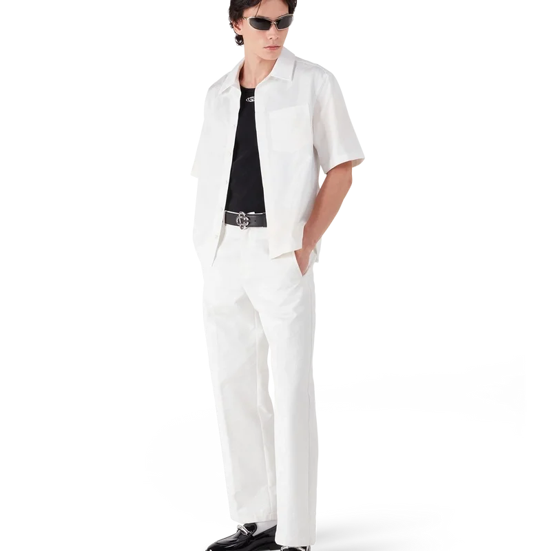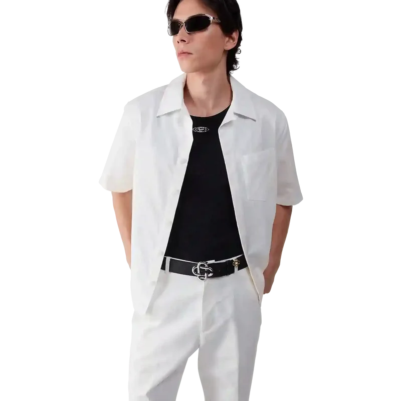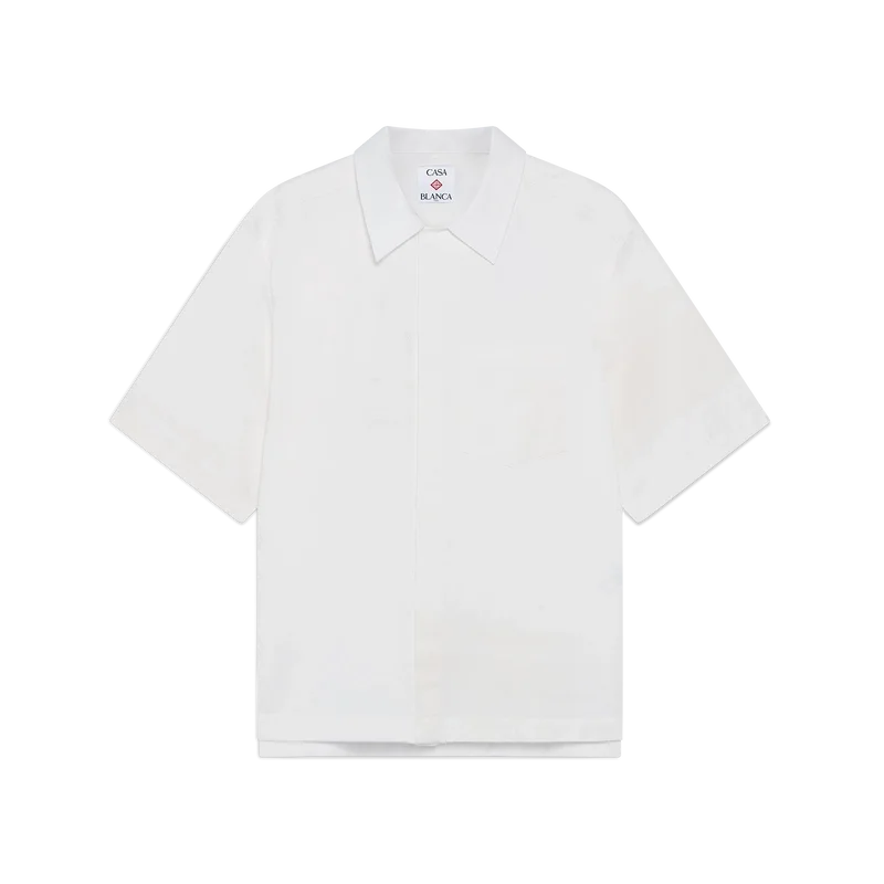 Das weiße Monogramm-Kurzarm-Shirt ist ein raffiniertes und edles Design mit dem ikonischen Monogramm-Muster des Hauses. Abgerundet durch einen Kragen, Corozo-Knöpfe mit dem ineinander verschlungenen CC-Logo und eine Brusttasche.