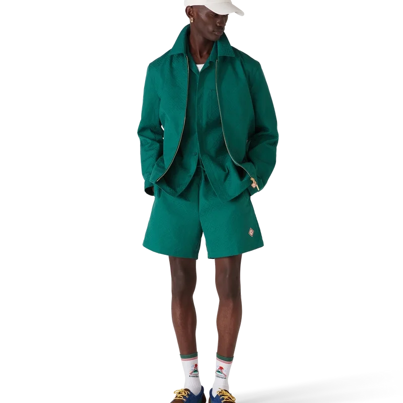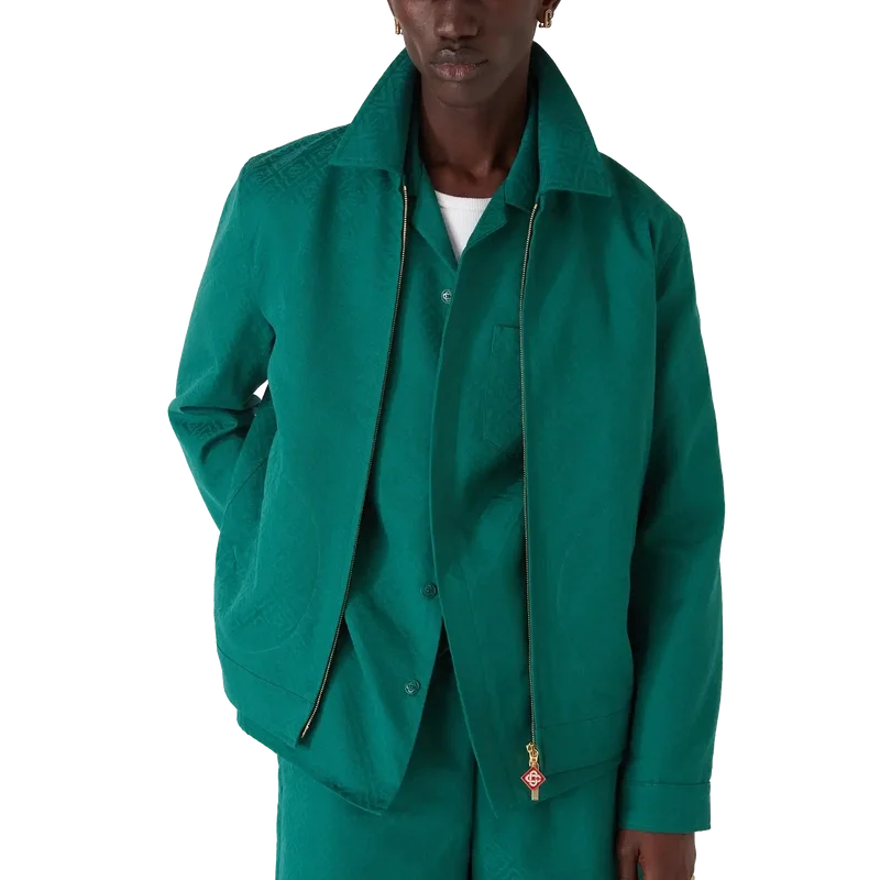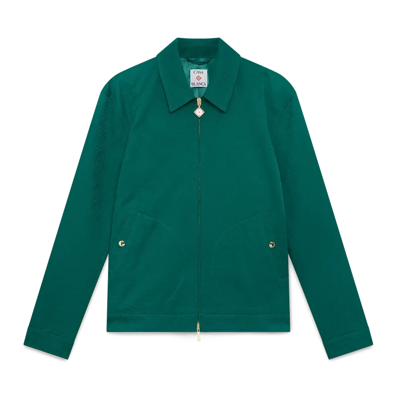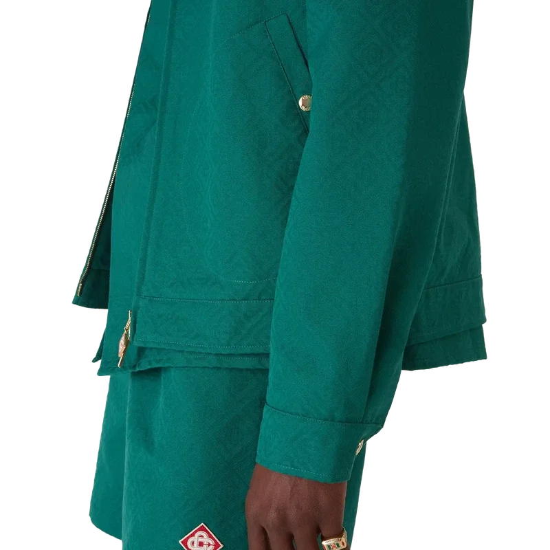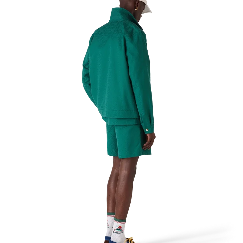 Die Baumwoll-Monogramm-Jacquard-Jacke ist ein langärmeliges Blouson-Modell aus Baumwoll-Jacquard-Stoff. Mit Reißverschluss, Trichterkragen, vergoldeten Metallbeschlägen und schrägen Pattentaschen.