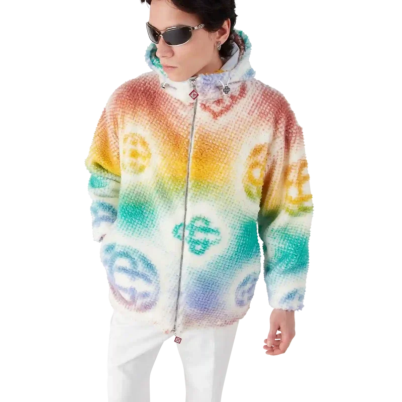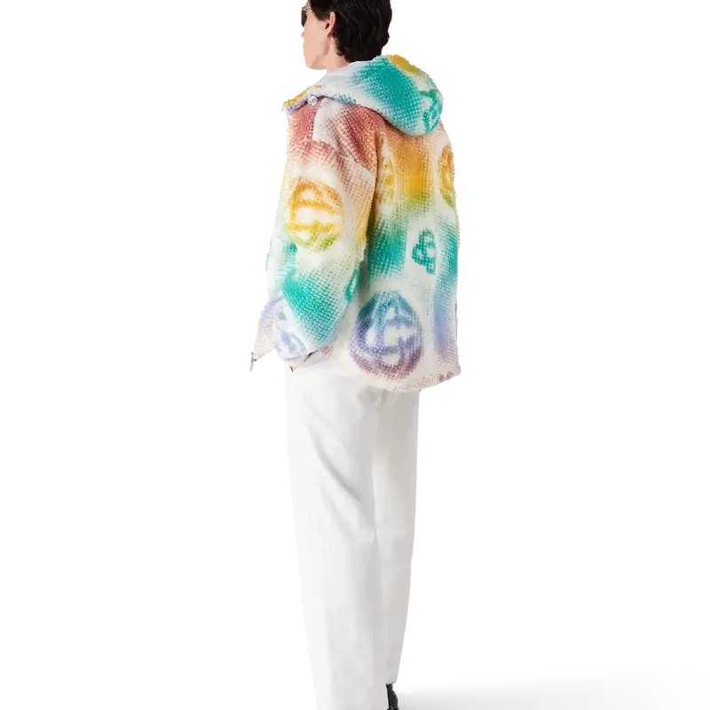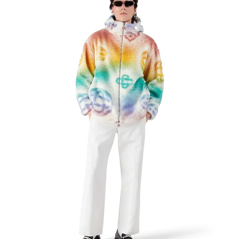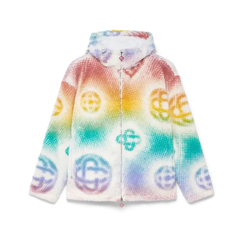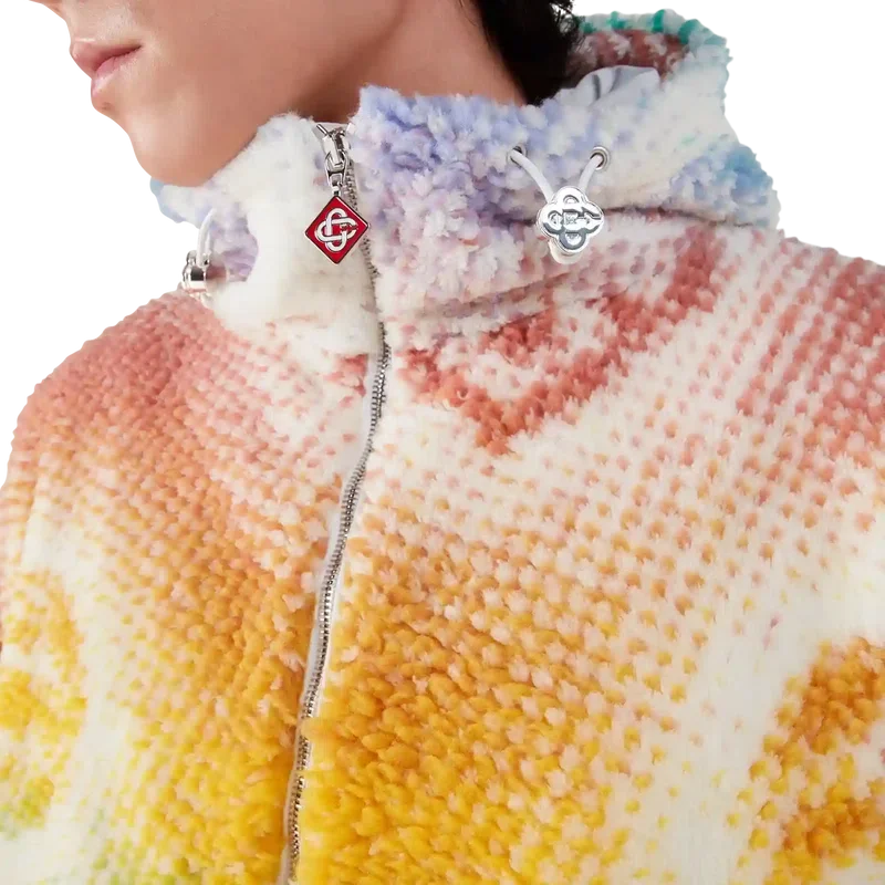 Die Halftone Monogram Fleecejacke ist ein zeitgemäßes Design mit Langarm und durchgehendem Print, das das Monogramm des Hauses in Halbton-Optik durch Airbrush-Technik darstellt und auf unseren früheren Experimenten mit dieser Technik aufbaut. Abgerundet wird sie durch eine Kapuze, einen Kordelzugverschluss mit ineinander verschlungenen CC-Logo-Kordelstoppern sowie einen Reißverschluss mit dem charakteristischen Diamant-Logo-Reißverschlussanhänger des Hauses.