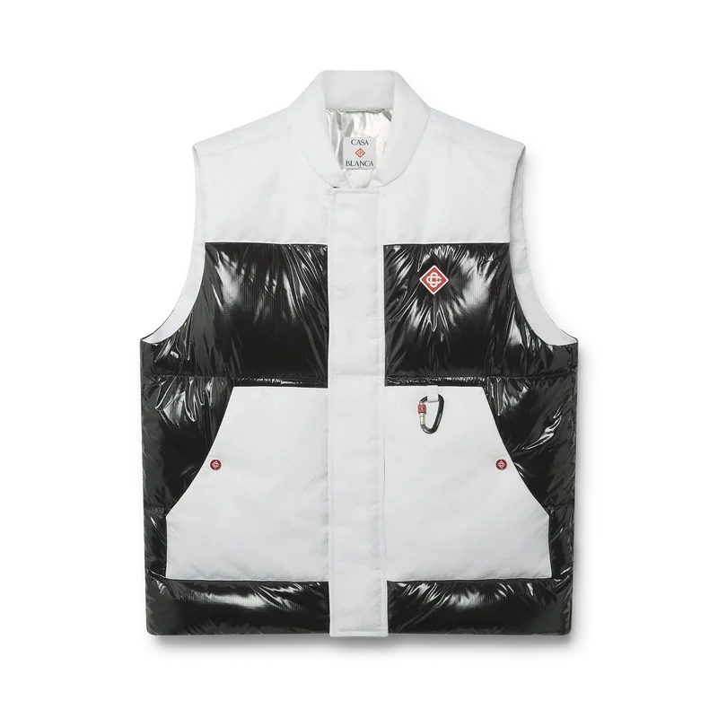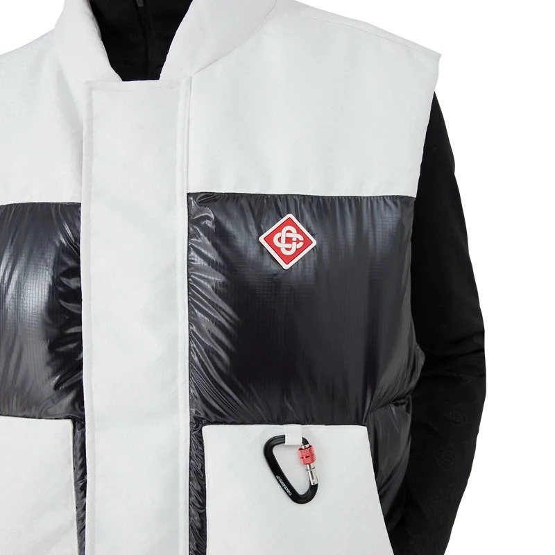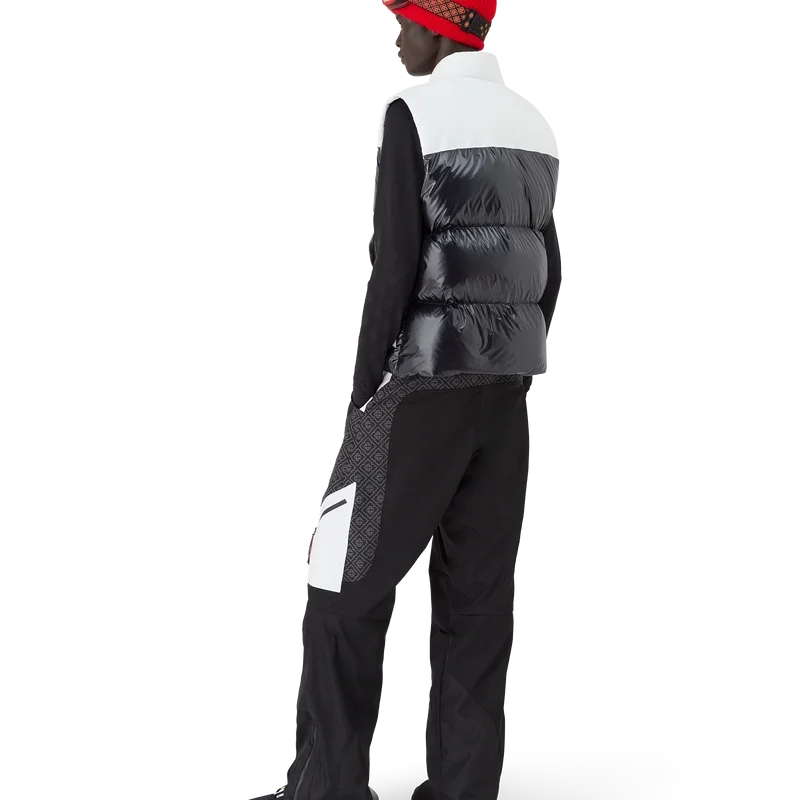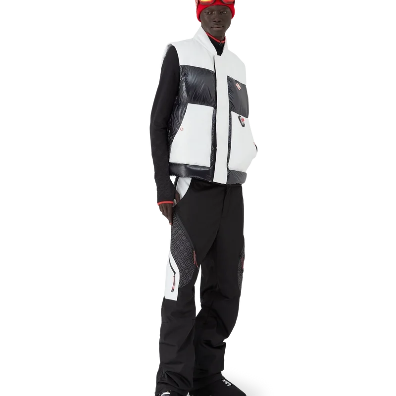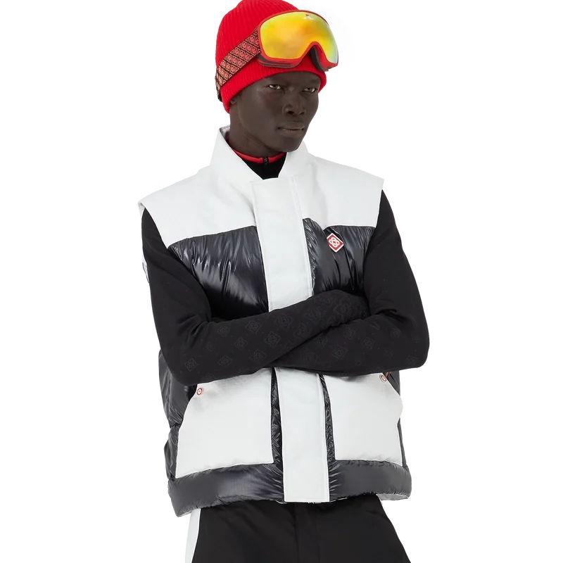 Die Ripstop-Daunen-Skijacke ist ein raffiniertes Design der Oberbekleidung aus Cc-Ripstop mit kontrastierender schwarzer Daunen- und Federfüllung. Inspiriert von Japans bergiger Landschaft, wo alte Tempel aus tiefen Schneeverwehungen auftauchen. Angelehnt an das dramatische Zusammenspiel dunkler Holzkonstruktionen vor strahlend weißen Landschaften und kahlen Winterbäumen, die gefrorene Wasserfälle umrahmen.
