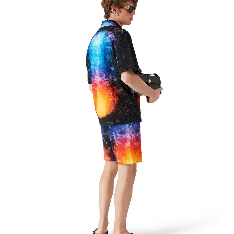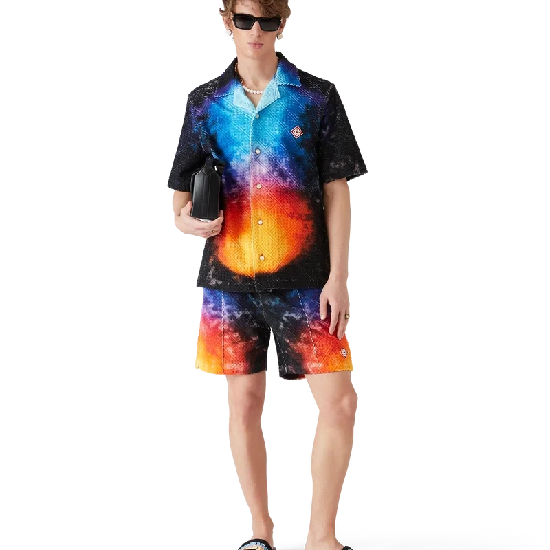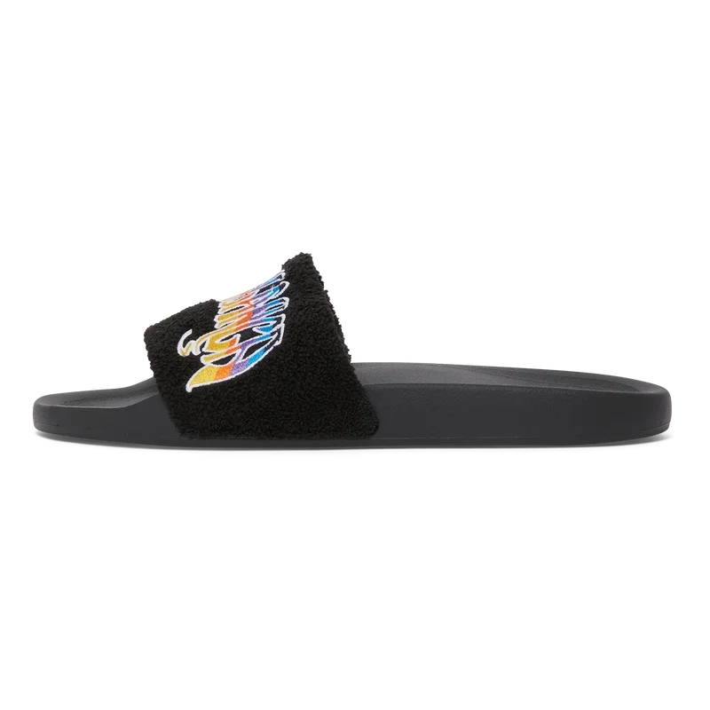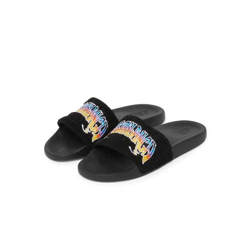 Die Gothic Terry Sliders sind aus besticktem Frottee gefertigt und zeigen den saisonalen Farbverlauf auf einer handgezeichneten Typografie des Casablanca-Logos, inspiriert von der in Tattoos verwendeten Gothic-Schriftart.