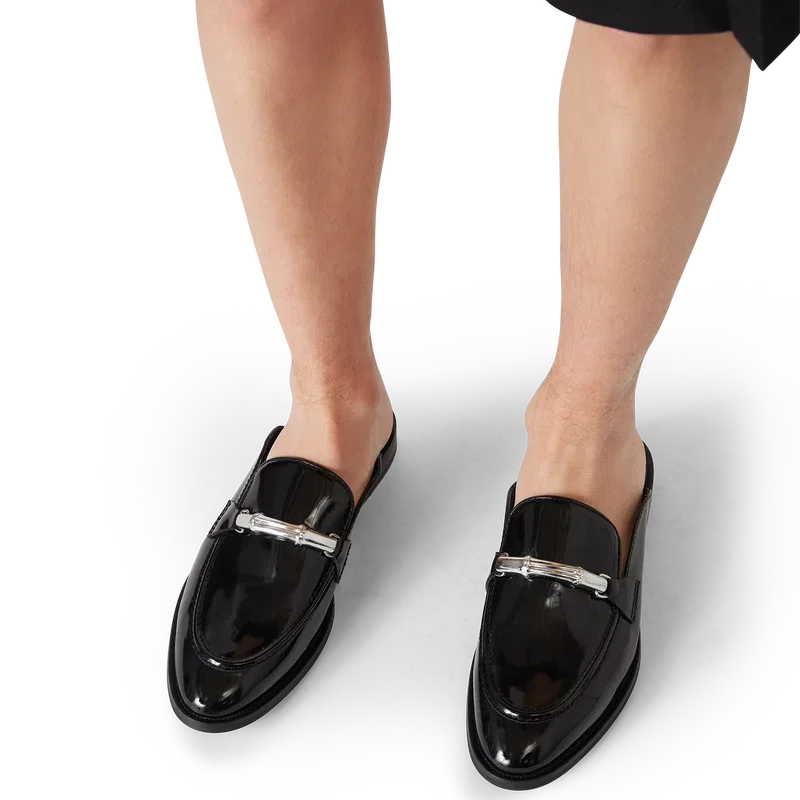 Der schwarze Bamboo Slip-on-Loafer ist ein flacher, hinterer offener Schuh mit geschlossener Spitze, gefertigt aus italienischem Kalbsleder. Abgerundet durch unseren ikonischen Bambusriemen, Lederfutter, Ledersohle, vergoldete Beschläge und einen 10-mm-Blockabsatz.