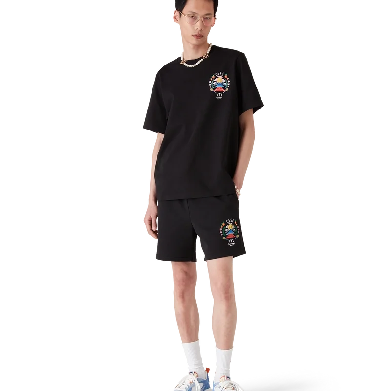 Die Casa Way Mountain Sweatshorts sind ein Sportbekleidungsdesign aus Bio-Baumwollstoff mit dem saisonalen Artwork des Hauses, das der Geschichte des von uns erforschten ikonografischen Stils folgt – digital erstelltes Artwork, das unser Berg-Logo mit verschiedenen Linien und Farbverläufen präsentiert und so ein starkes Branding schafft.