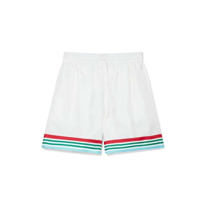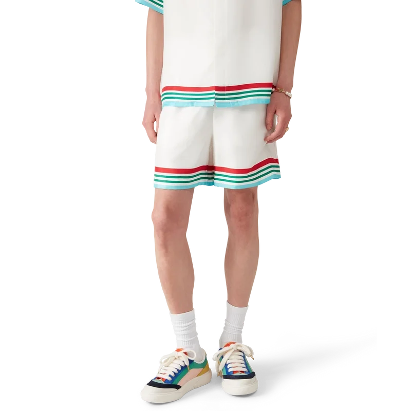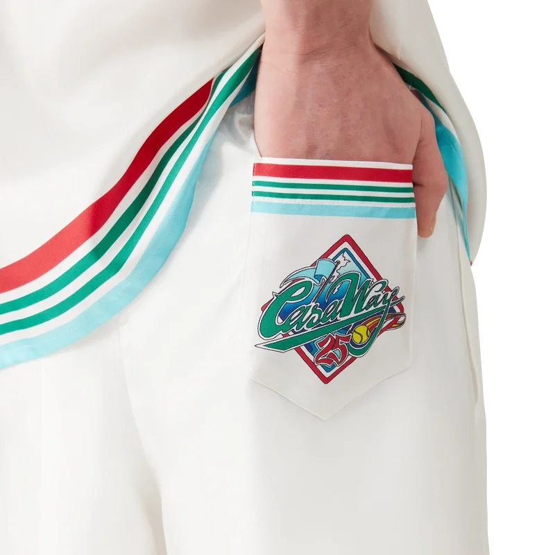 Die Casa Way World Series Seidenshorts sind ein klassisches Design aus Seidentwill, das die aktuelle Casa Way World Series zeigt und die klassischen All-American-Baseball-Insignien für Casa Way Tennis neu interpretiert. Abgerundet durch einen elastischen Bund, einen Kordelzug, Seitentaschen in den Nähten, einen gestreiften Saum und Taschendetails sowie eine aufgesetzte Gesäßtasche.
