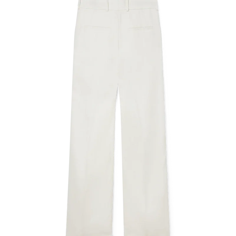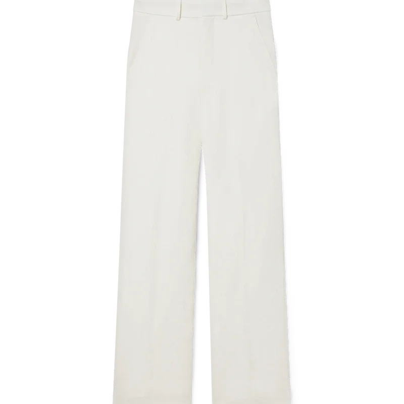 Die weiße Schlaghose ist eine maßgeschneiderte Hose mit einer vertrauten Silhouette. Die Hose ist für das Tragen mit dem passenden Blazer gedacht, besteht aus 100 % Wolle und hat eine klassische Passform.