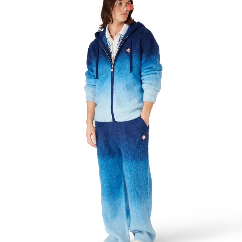 Die Gradient Mohair-Hose ist ein Modell mit geradem Bein und dem charakteristischen Diamant-Logo des Hauses. Abgerundet durch einen elastischen Bund und einen Kordelzug.