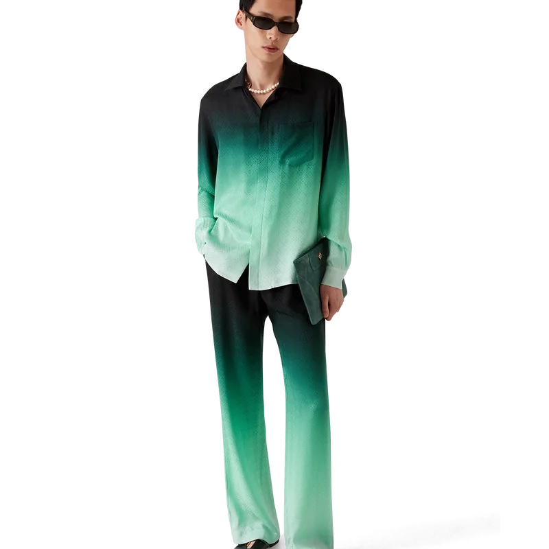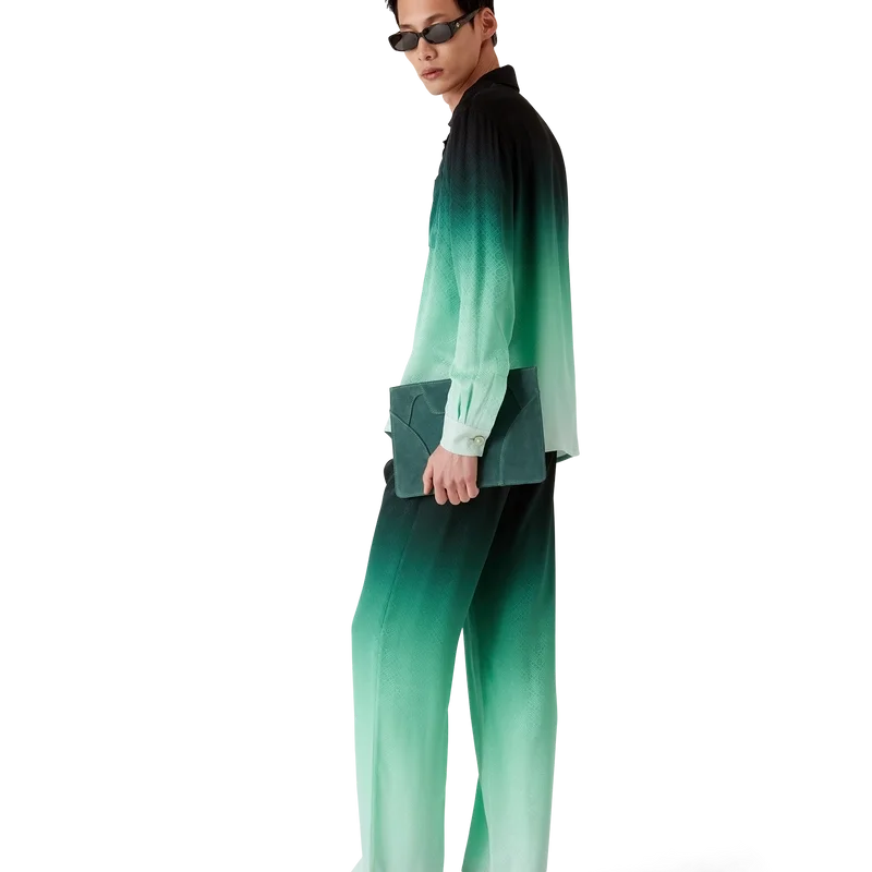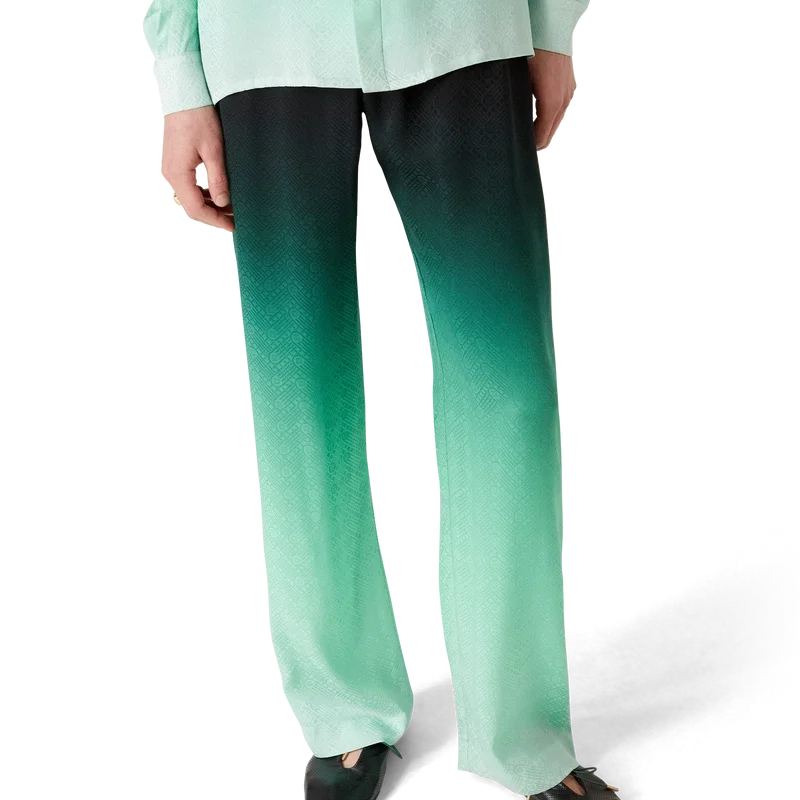 Die Gradient Ping Pong Seiden-Hose verfügt über ein durchgehendes Druckmuster – ein klassisches Monogramm, das für unsere erste japanische Kollektion entwickelt wurde und sich durch ein sich diagonal bewegendes Ping-Pong-Ball-Motiv auszeichnet, das sich wiederholt – gefertigt aus einem Monogramm-Seidentwill-Stoff. Abgerundet durch einen elastischen Bund, Eingrifftaschen und einen Kordelzugverschluss.