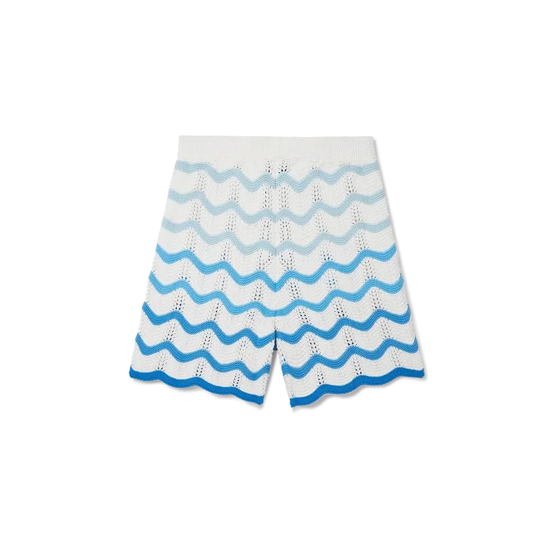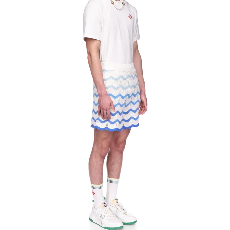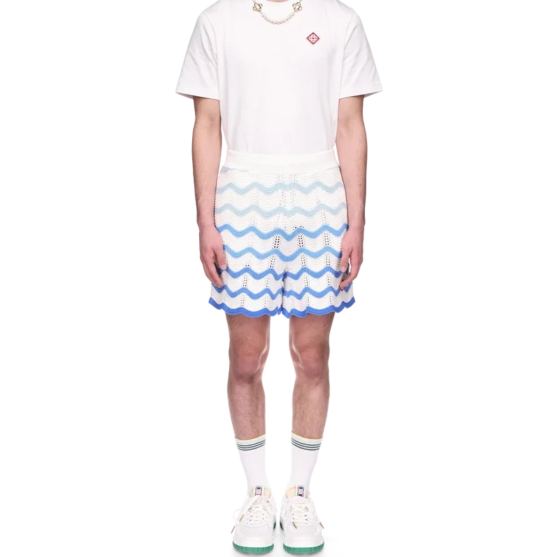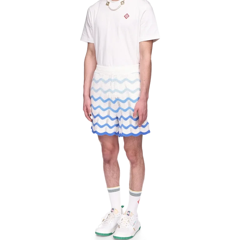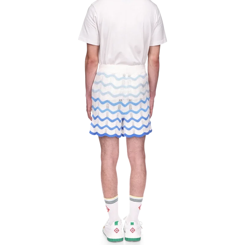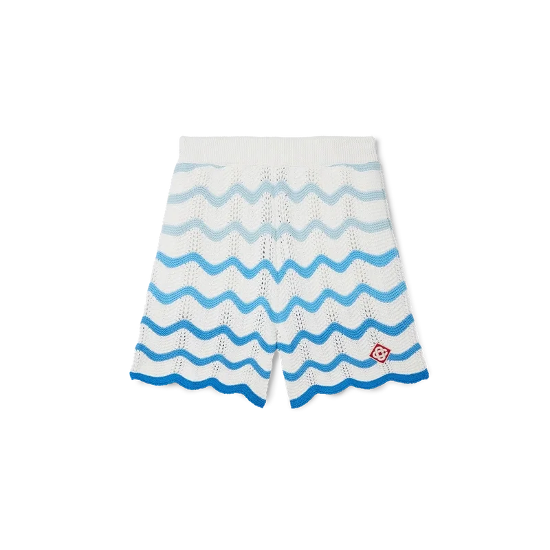 Die Wavy Gradient Crochet Shorts sind ein typisches Casablanca-Modell, gefertigt aus einem weichen, strukturierten, offen gewebten Häkelstoff. Mit innenliegendem Kordelzug, dem Diamant-Logo des Hauses und einem Casablanca-Markenlabel versehen.