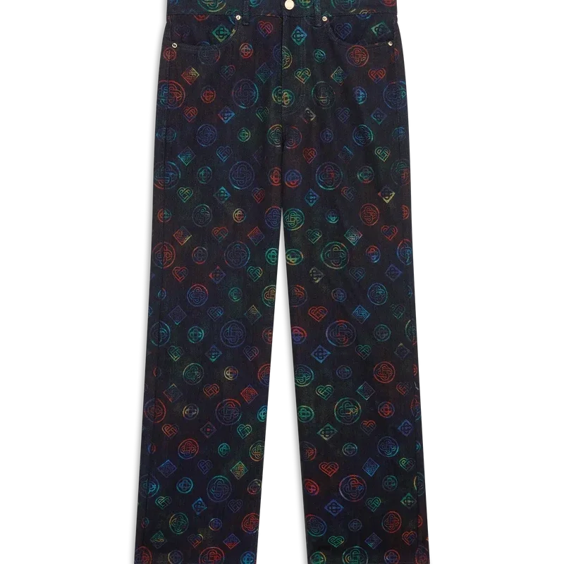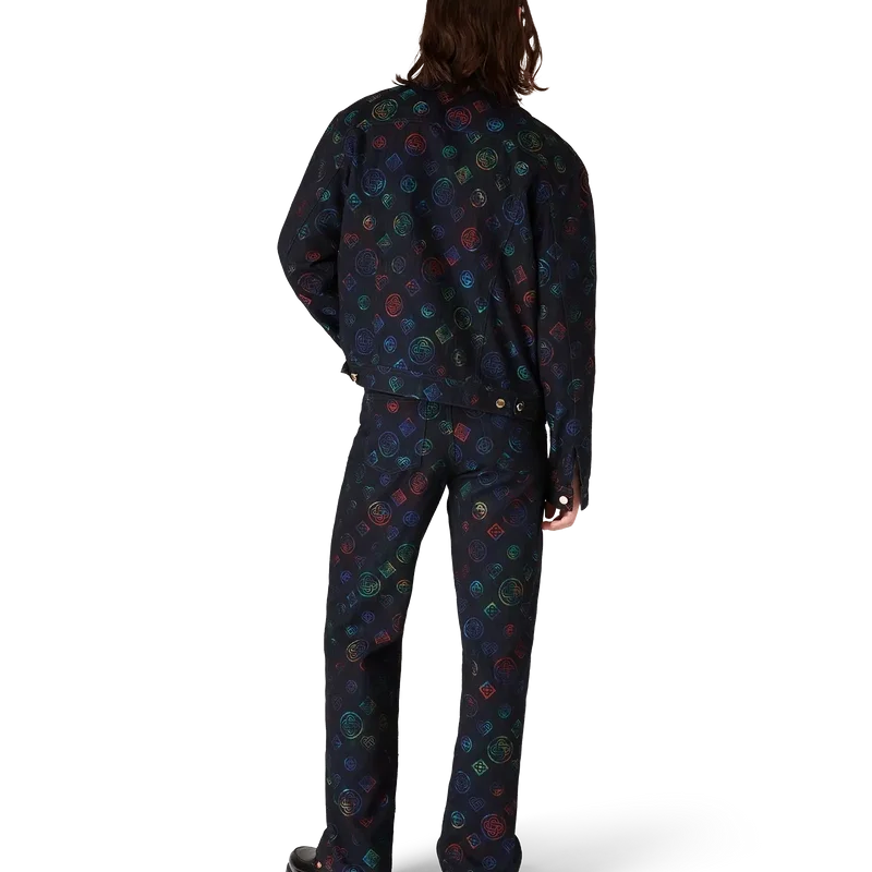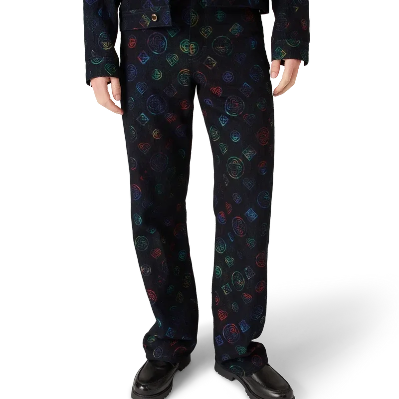 Die Heatmap Denim Jeans ist ein raffiniertes Modell mit geradem Bein aus Baumwoll-Denim, das mit dem charakteristischen Heatmap-Motiv der Saison verziert ist. Abgerundet wird sie durch einen Reißverschluss, Taschen im Jeans-Stil, einen Bund, Gürtelschlaufen und ein Futter aus einer Polyester-Baumwoll-Mischung für erhöhten Tragekomfort.