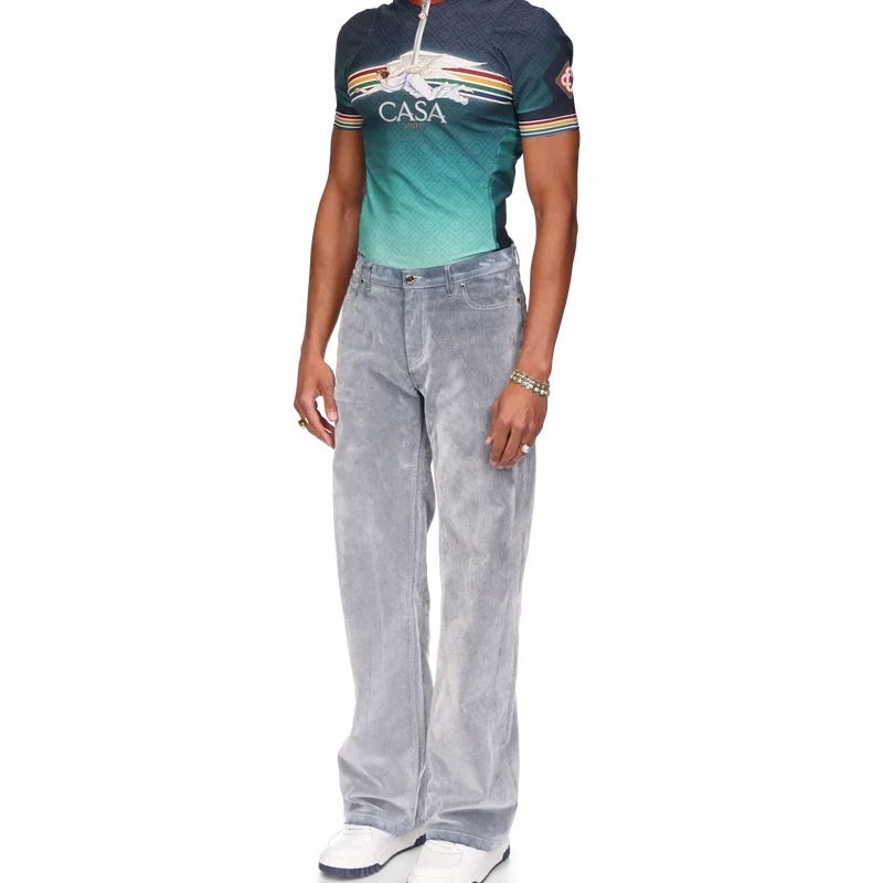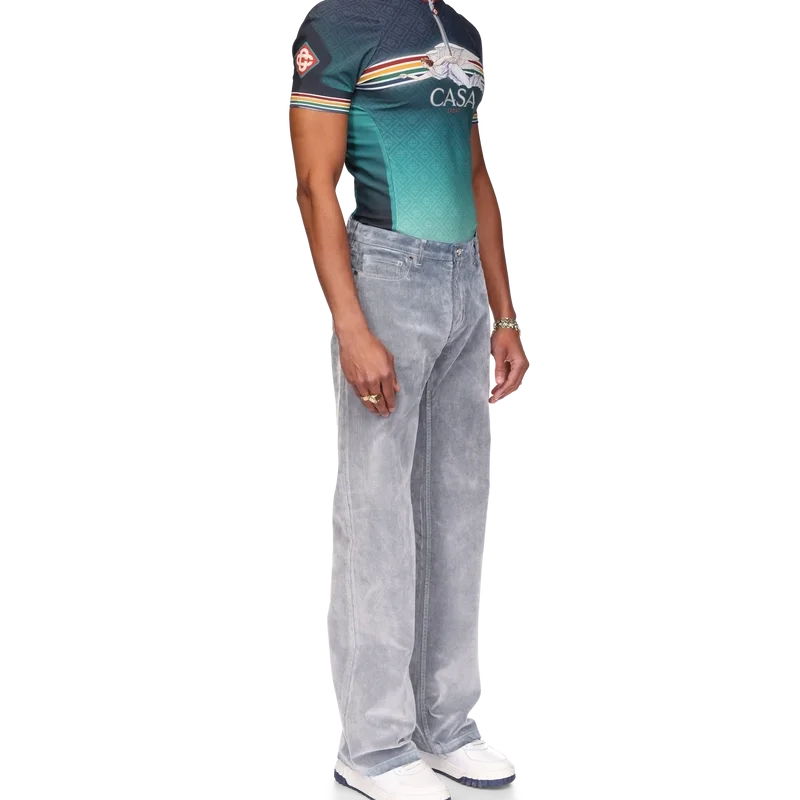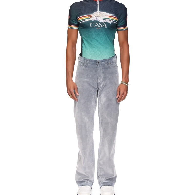 Die Peach Texture Jeans ist ein Modell mit geradem Bein aus einem Baumwollmischgewebe. Mit vergoldeten Markenbeschlägen, Reißverschluss, Vorder- und Gesäßtaschen, einem Marken-Lederpatch und Gürtelschlaufen.