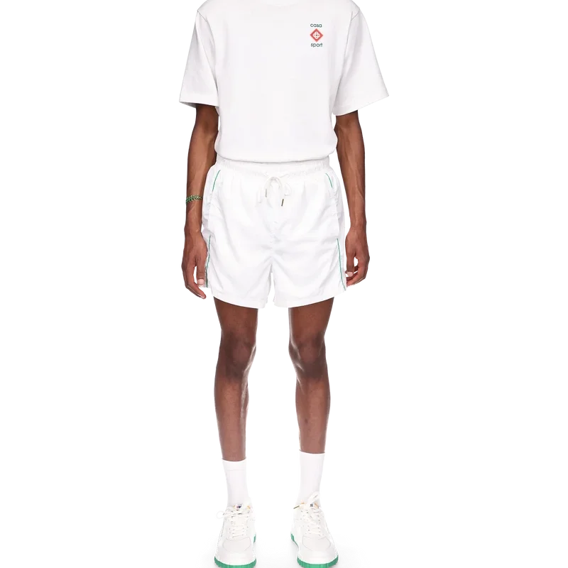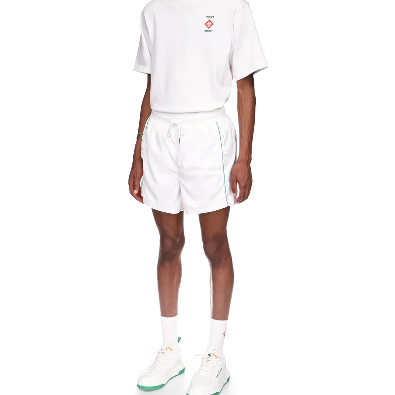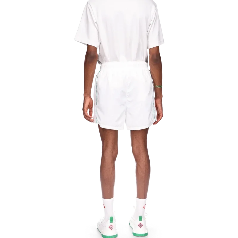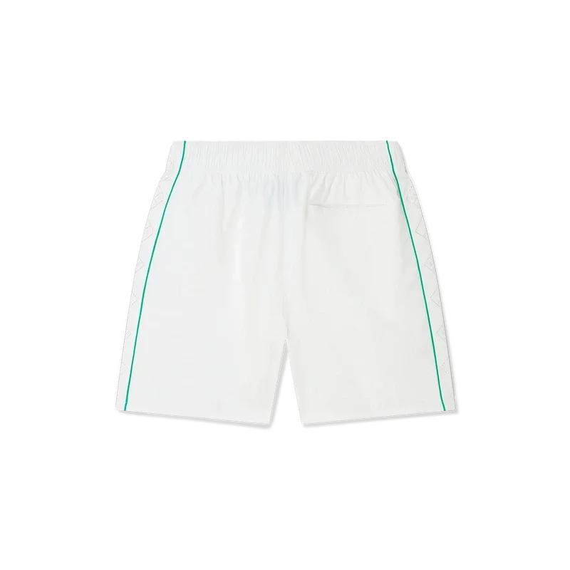 Die Laser Detail Track Shorts sind ein Sportbekleidungsdesign mit den für das Haus charakteristischen, lasergeschnittenen Details aus dem Diamond Monogram und dem Heart Monogram. Hergestellt aus unserem charakteristischen, leichten Taftstoff, komplett mit elastischem Bund, Kordelzug mit goldenen Enden, Seitentaschen, Paspeldetails und einer Gesäßtasche.