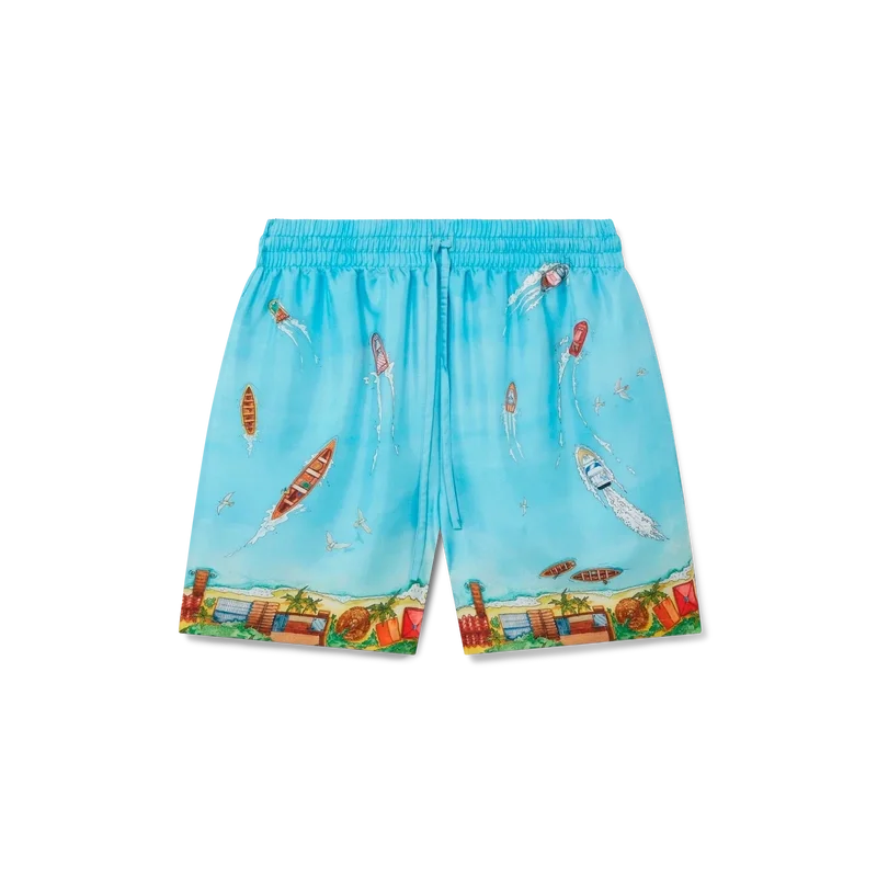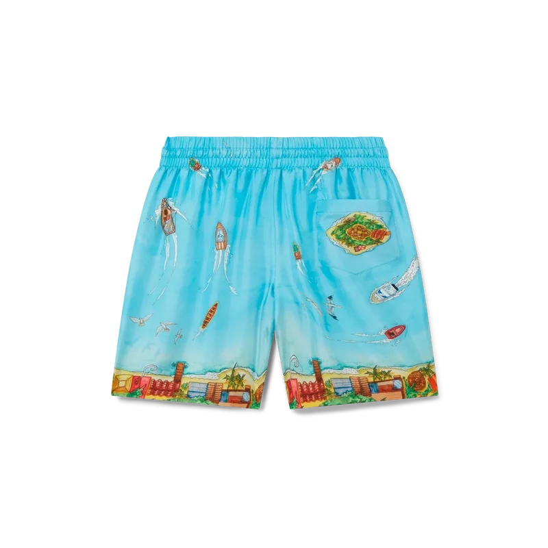 Die Maison Sur Piloti Seidenshorts sind ein bekanntes Design aus bedrucktem Seidentwill mit einem Motiv, das von den in Nigeria typischen Häusern auf Stelzen inspiriert ist. Abgerundet durch einen elastischen Bund, einen Kordelzug, Seitentaschen und eine Gesäßtasche mit dem charakteristischen ineinander verschlungenen CC-Logo des Hauses.