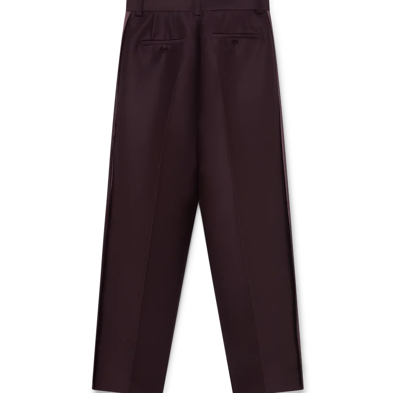 Die maßgeschneiderte Woll-Seiden-Hose mit Seitenstreifen von Blend hat ein klassisches Design mit geradem Bein. Mit Reißverschluss, Biesen an der Vorderseite, Eingrifftaschen, Gürtelschlaufen, Gesäßtaschen mit Paspel und Corozo-Knopfverschluss mit ineinander verschlungenem CC-Logo sowie Viskose-Streifen an den Seiten.