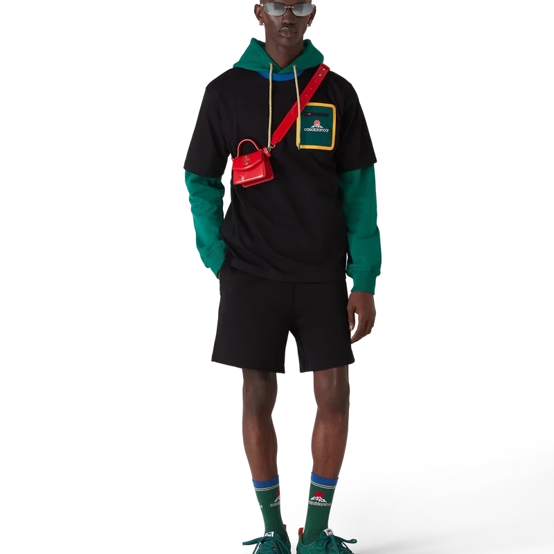 Die Montagne Sweatshorts sind ein klassisches Sportbekleidungsdesign aus Bio-Baumwollstoff. Mit elastischem Bund, Kordelzug, einer Gesäßtasche in den Hausfarben mit Reißverschluss und seitlichen Eingrifftaschen an den Beinen.
