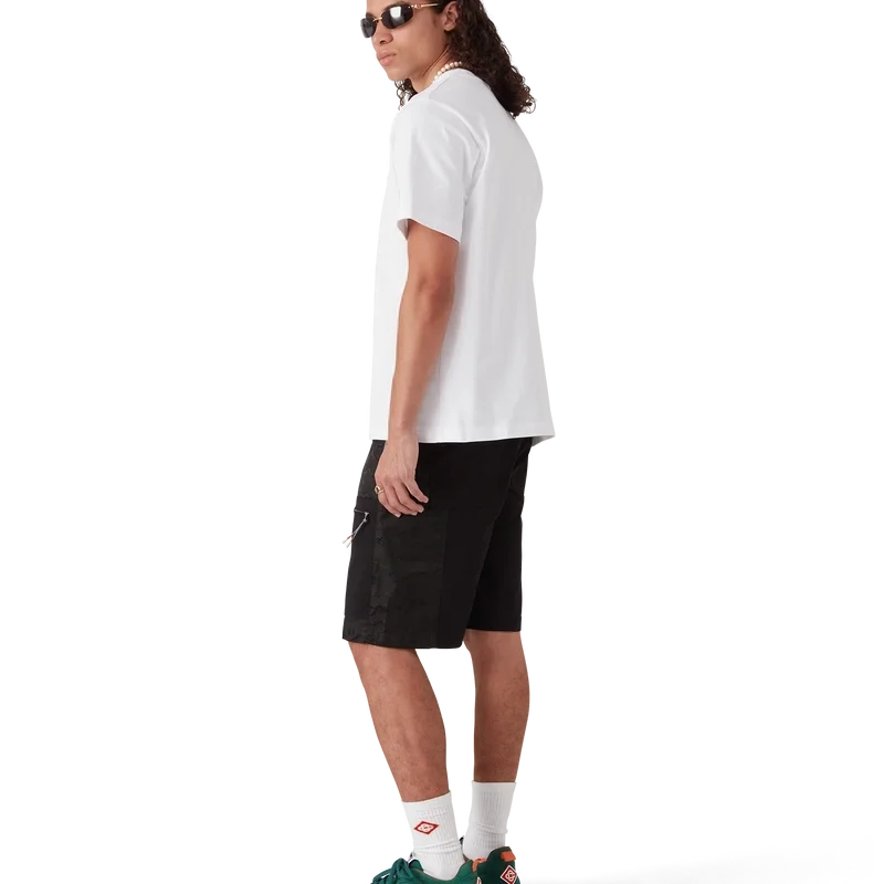 Die Nylon Mountain Camo Cargo-Shorts sind ein knielanges Modell aus Jacquard-Nylon und Baumwollstoff. Ausgestattet mit schrägen aufgesetzten Taschen mit vertikalen Reißverschlüssen und den für das Haus typischen Reißverschlusslaschen mit Diamant-Logo, einem Futter, aufgesetzten Taschen an den Oberschenkeln mit Reißverschluss und von Bergseilen inspirierten Kordelzuglaschen, aufgesetzten Gesäßtaschen, einem Reißverschluss und seitlichen Weitenreglern.