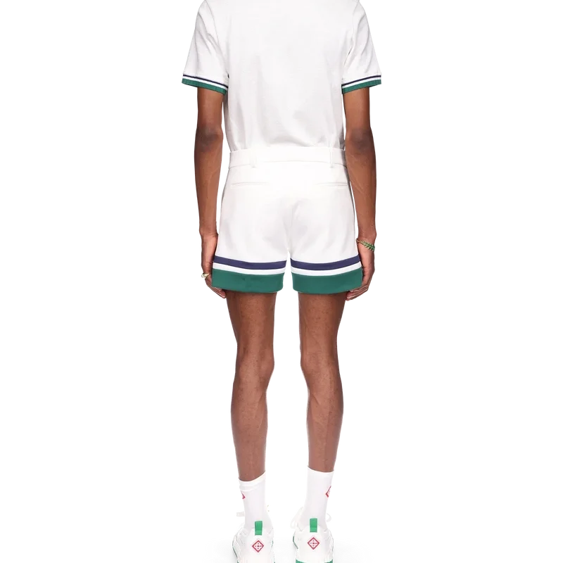 Die Sports Tailoring Shorts sind aus einem Baumwollmischgewebe gefertigt und mit dem charakteristischen Rautenlogo des Hauses versehen. Ausgestattet mit schrägen Vordertaschen, Futter, aufgesetzten Gesäßtaschen, Gürtelschlaufen, Reißverschluss und kontrastierenden blauen, weißen und grünen Einsätzen am Saum.