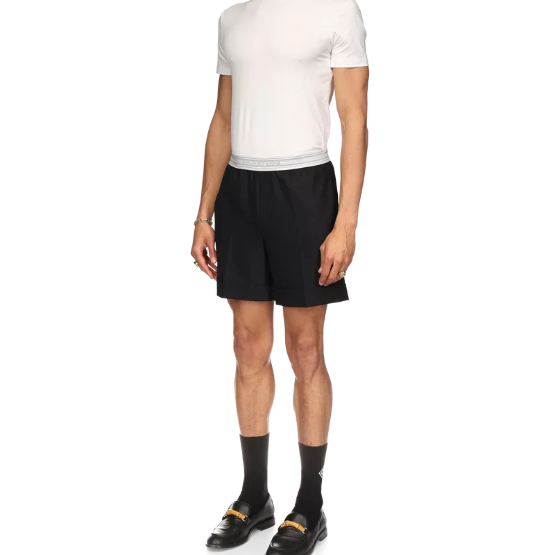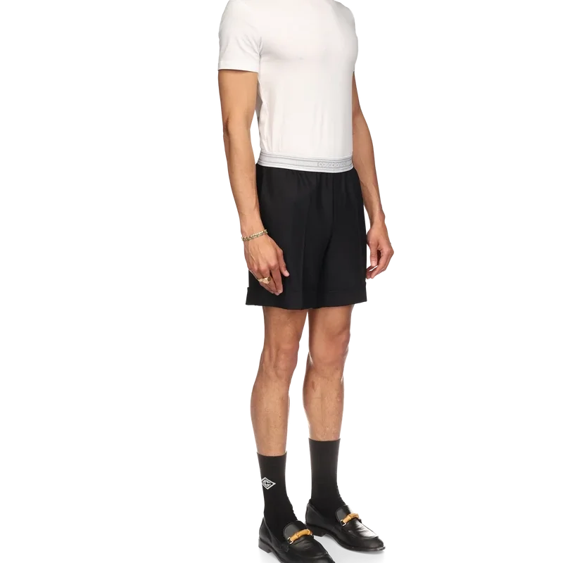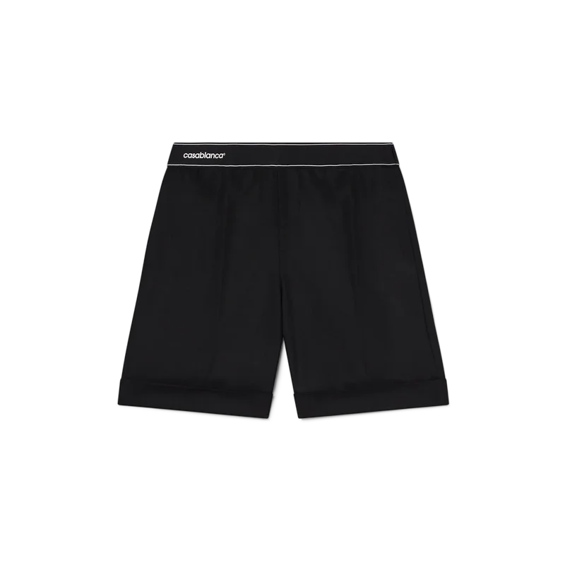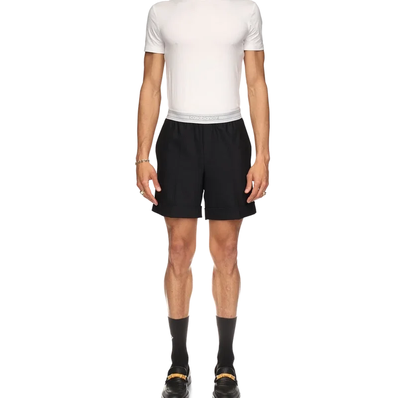 Die Sports Tailoring Shorts sind ein maßgeschneidertes Design aus einem Wollmischgewebe mit einem elastischen Kordelbund mit dem Casablanca-Logo. Abgerundet durch schräge Vordertaschen, eine vorgetäuschte Vorderverschlussöffnung, eine Paspeltasche hinten und einen Umschlag am Saum.