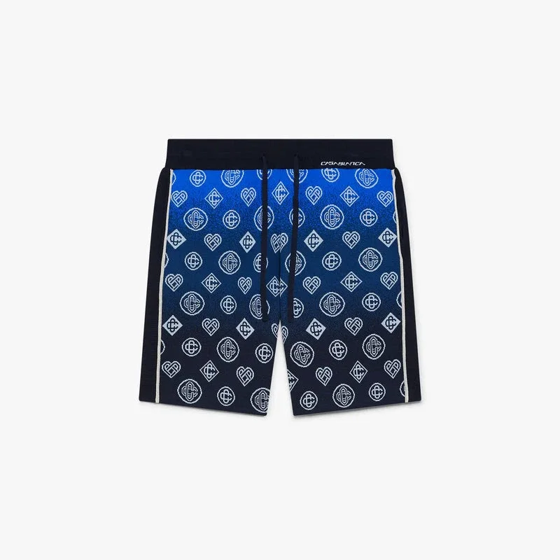 Die gestrickten Shorts mit Monogramm-Farbverlauf zeichnen sich durch ein raffiniertes Design aus, bei dem das ikonische Monogramm-Muster des Hauses auf einem Hintergrund mit Farbverlauf zur Geltung kommt. Abgerundet durch einen elastischen Bund, einen Kordelzug, Seitentaschen in den Beinen und eine Gesäßtasche.