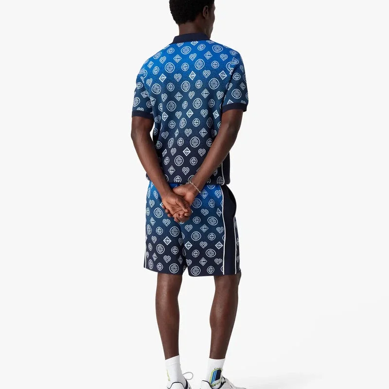• Ikonisches Monogram-Muster in Marineblau mit Farbverlauf