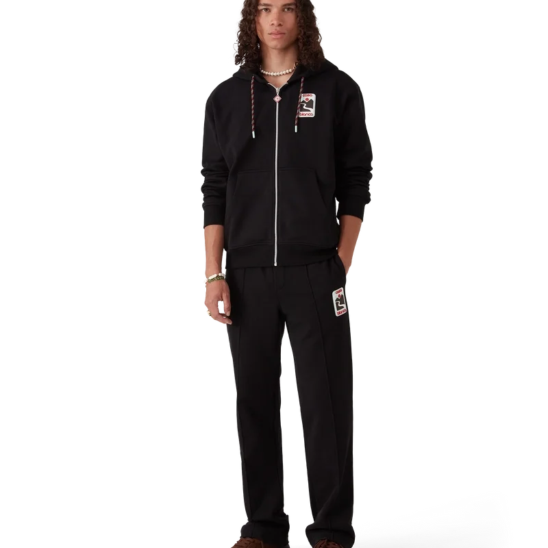 Die Sunset Valley Sweatpants sind eine Hose mit geradem Bein aus Bio-Baumwollstoff. Mit elastischem Bund, Kordelzug mit goldenen Enden, Biesen an der Vorderseite, Eingrifftaschen und einer aufgesetzten Gesäßtasche.