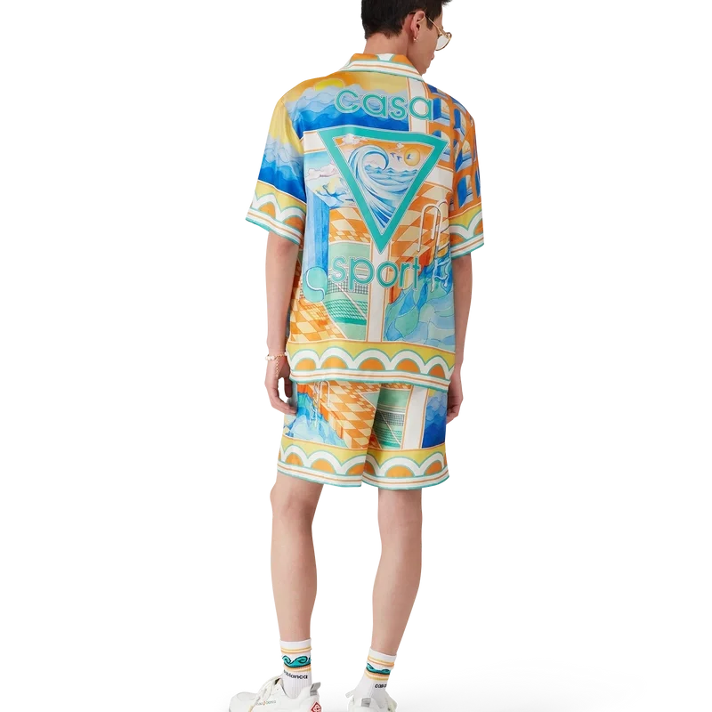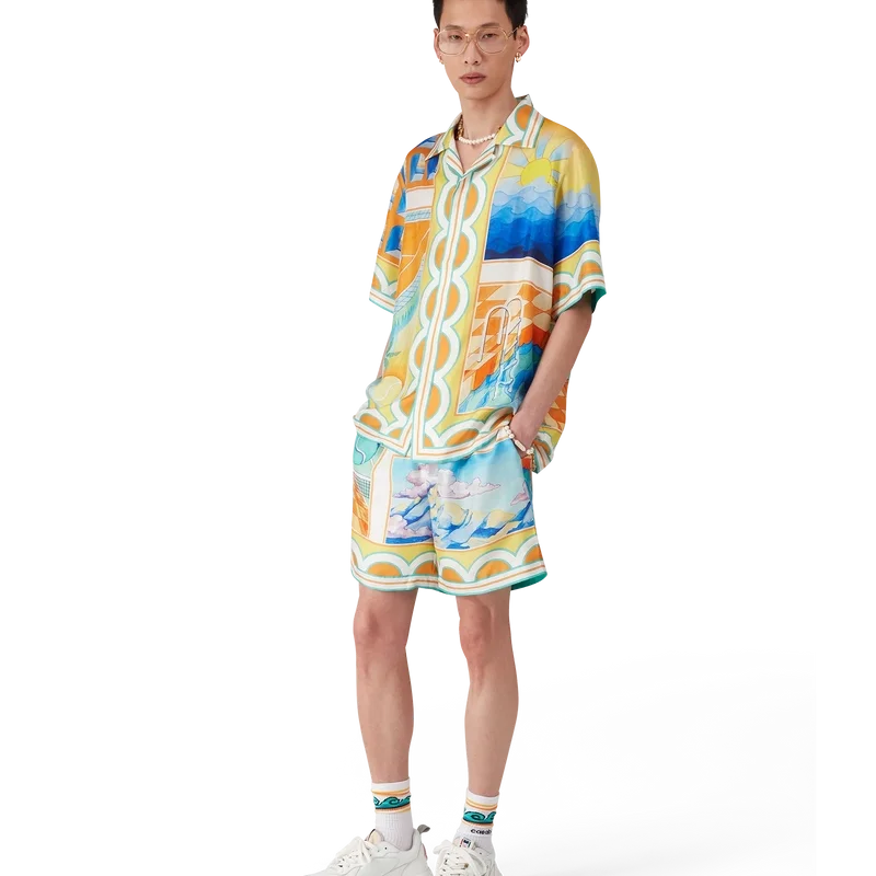 Die Surreal Pool Seidenshorts sind ein durchgehend bedrucktes Design aus Seidentwill. Mit elastischem Bund, Kordelzug, Seitentaschen in den Beinen, Kantenverzierung am Saum und einer aufgesetzten Gesäßtasche.