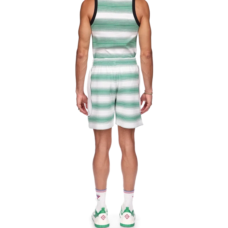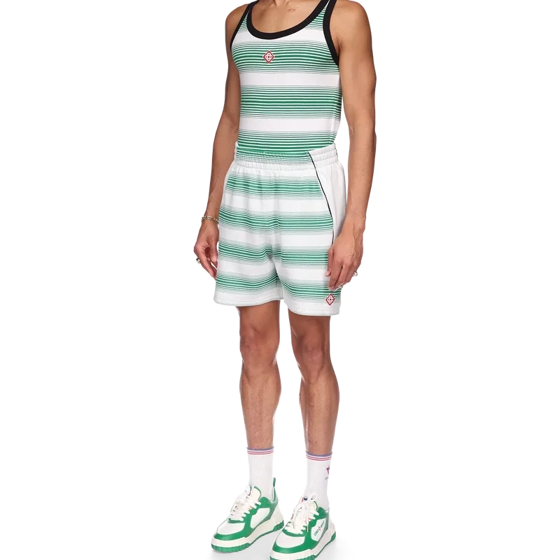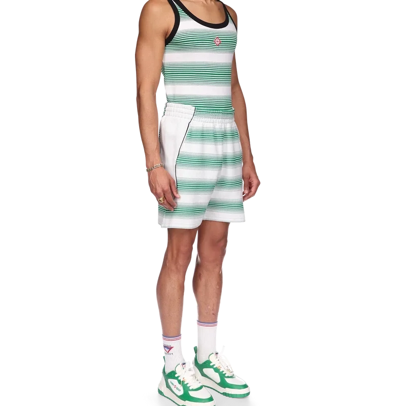 Die Sweatshorts mit Farbverlaufsstreifen sind von den Farben der nigerianischen Flagge inspiriert, aus einem Baumwollmischgewebe gefertigt und mit dem Diamond-Logo des Hauses auf dem linken Bein versehen. Mit elastischem Bund, Kordelzug, Seitentaschen und weißen Seiteneinsätzen.