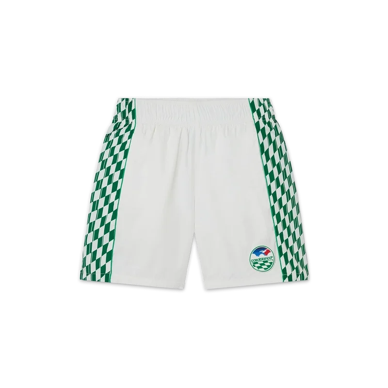 Sportlicher Luxus trifft auf Retro-Charme mit unseren weißen Tennis Horizon Shells Trainingsanzügen aus Polyester. Der sportliche Stil vereint ein saisonales Design mit der klassischen Silhouette einer Laufhose und einem elastischen Bund.