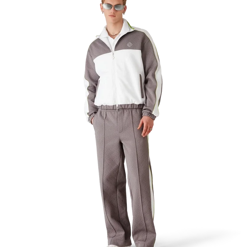 Die Tennis-Jacquard-Jogginghose besticht durch ein raffiniertes Design mit dem charakteristischen Monogramm des Hauses, einem Diamond Monogram und kontrastierenden Paspeln. Abgerundet wird sie durch einen elastischen Bund, einen Kordelzug, seitliche Eingrifftaschen, eine Gesäßtasche, Biesen an der Vorderseite und gestreifte Einsätze an den Seiten.