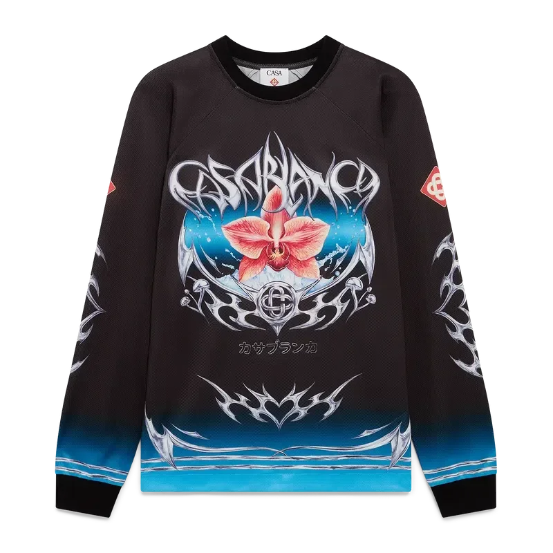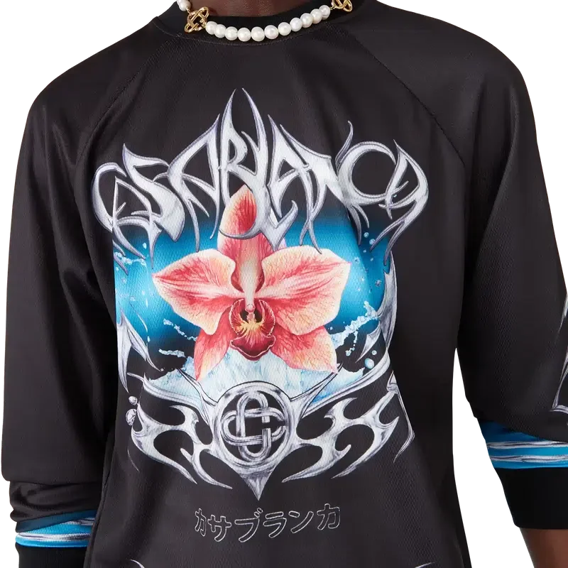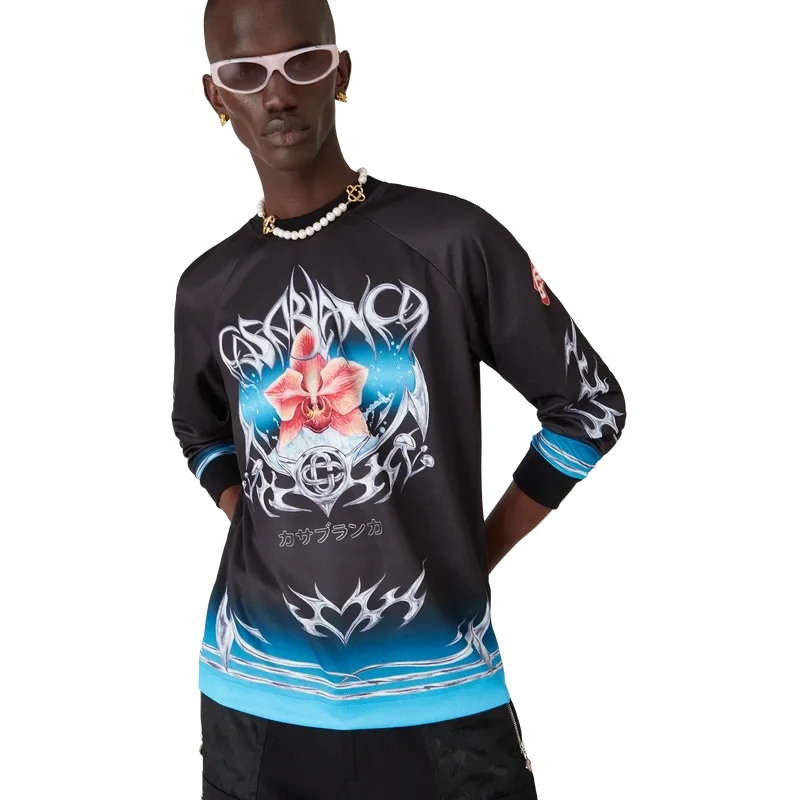 Das Blade Langarm-Fußballtrikot ist ein bedrucktes Design mit dem Blade-Motiv dieser Saison, das mit dem Kontrast zwischen zwei gegensätzlichen Empfindungen spielt – der Schärfe der Klinge und dem kalten, silbernen Chrom, kontrastiert mit der Wärme der Natur, wie den kräftigen Rosa- und Rottönen einer Orchideenblüte. Die Hinzufügung von Wassertropfen verleiht dem Design eine frische, klare Note. Abgerundet durch gerippte Bündchen und Kragen.