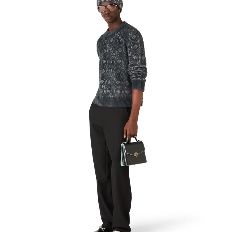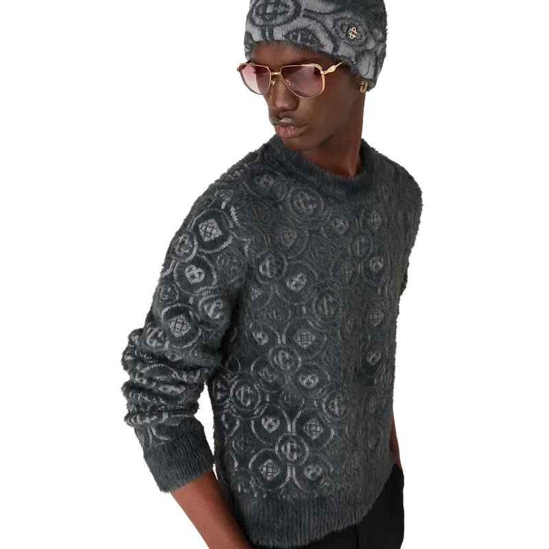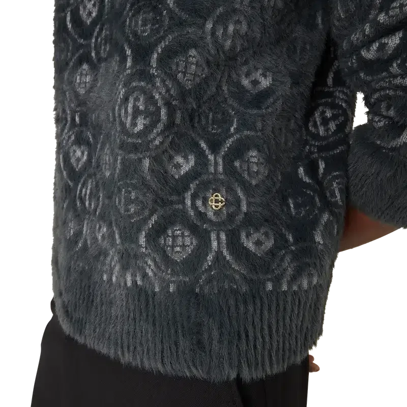 Der flauschige Monogramm-Pullover ist ein langärmeliges Modell aus flauschigem Strickstoff aus einer Wollmischung, verziert mit dem wiederkehrenden Honeydew-Logo des Hauses. Dieses Muster unterscheidet sich von unseren anderen Monogrammen, da es einzigartige Formen zu einem einheitlichen Muster kombiniert. Abgerundet wird der Pullover durch eine charakteristische vergoldete, ineinander verschlungene CC-Niete sowie einen klassischen gerippten Rundhalsausschnitt, Ärmelbündchen und Saumdetails.