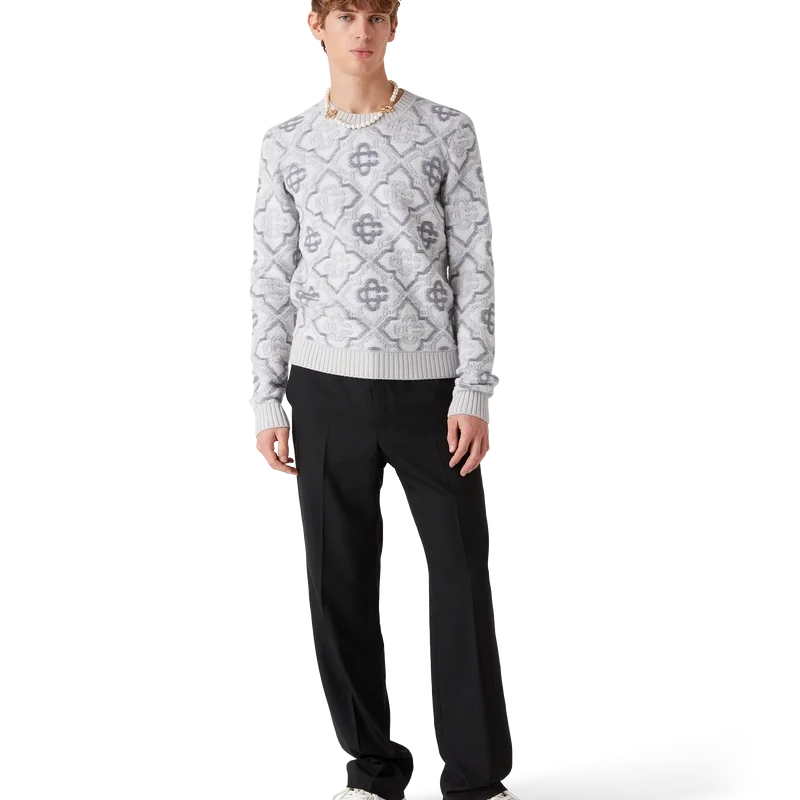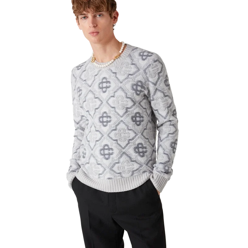 Der Monogram-Strickpullover ist ein klassisches Design mit dem charakteristischen Monogramm des Hauses, gefertigt aus einem Wollmischgewebe. Abgerundet durch einen klassischen gerippten Rundhalsausschnitt, Ärmelbündchen und Saum.