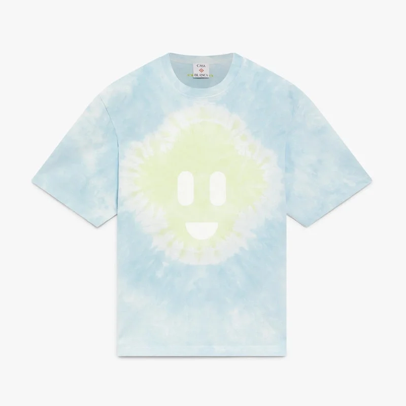 Das blaue Oversized-T-Shirt mit kurzen Ärmeln und CC-Smile-Tie-Dye-Muster besticht durch ein raffiniertes Design mit der charakteristischen CC-Smile-Stickerei des Hauses auf einem Tie-Dye-Hintergrund. Abgerundet wird es durch einen klassischen Rundhalsausschnitt und eine Oversized-Silhouette.