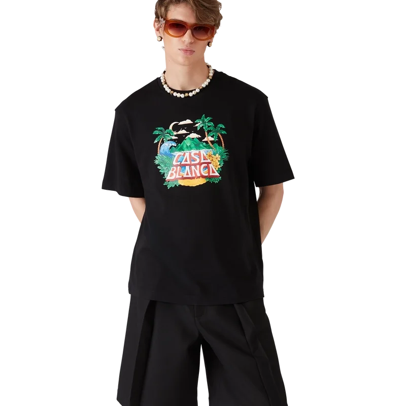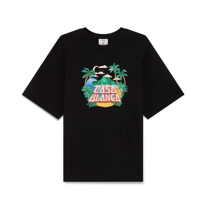 Das Casa Beach Wave T-Shirt ist ein bedrucktes Kurzarm-Modell aus Bio-Baumwolle mit einem charakteristischen Motiv, das an ein Souvenir-T-Shirt erinnert, wie man es im Strandurlaub kaufen würde. Abgerundet durch einen klassischen Rundhalsausschnitt.