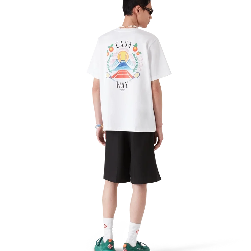 Das Casa Way Mountain T-Shirt ist ein kurzärmeliges Modell aus Bio-Baumwolle und zeigt das saisonale Design des Hauses, das für diese Saison neu interpretiert wurde. Abgerundet durch einen klassischen Rundhalsausschnitt.
