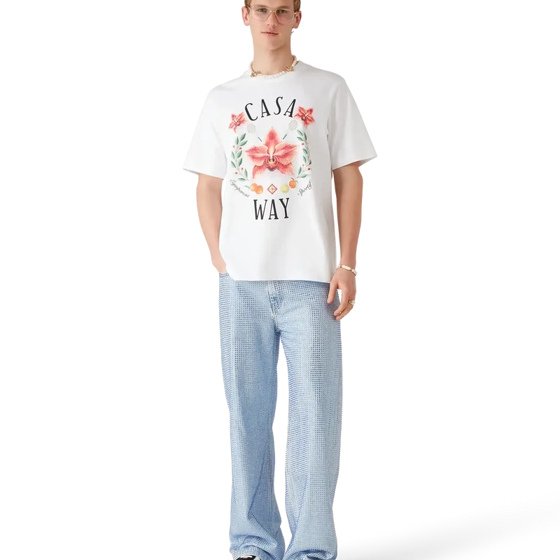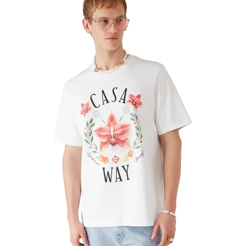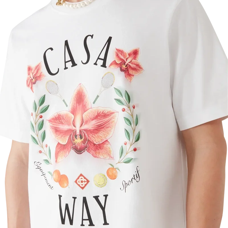 Das Casa Way Orchid T-Shirt ist ein raffiniertes, bedrucktes Kurzarm-Design mit einem Motiv, das die Orchidee als Blume der Saison zeigt. Abgerundet durch einen klassischen Rundhalsausschnitt.