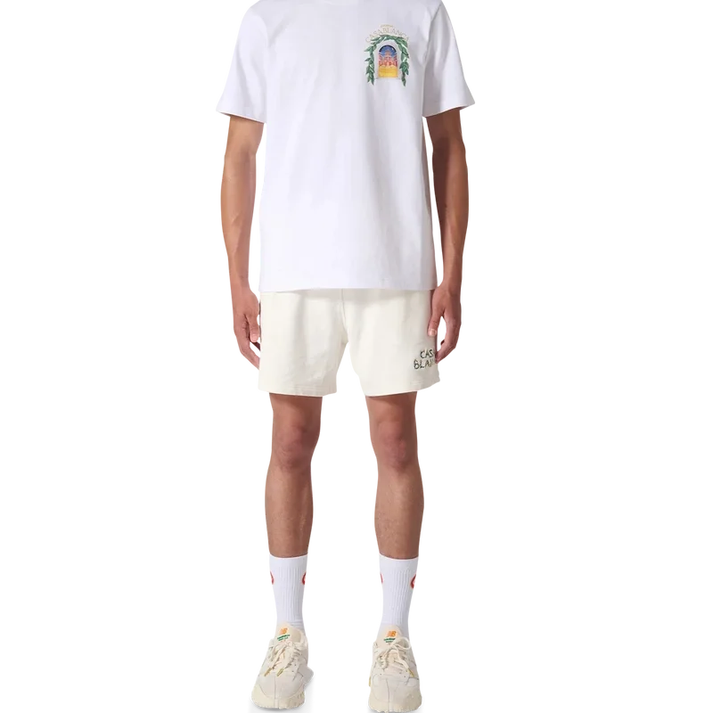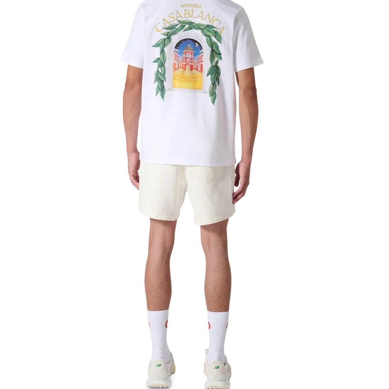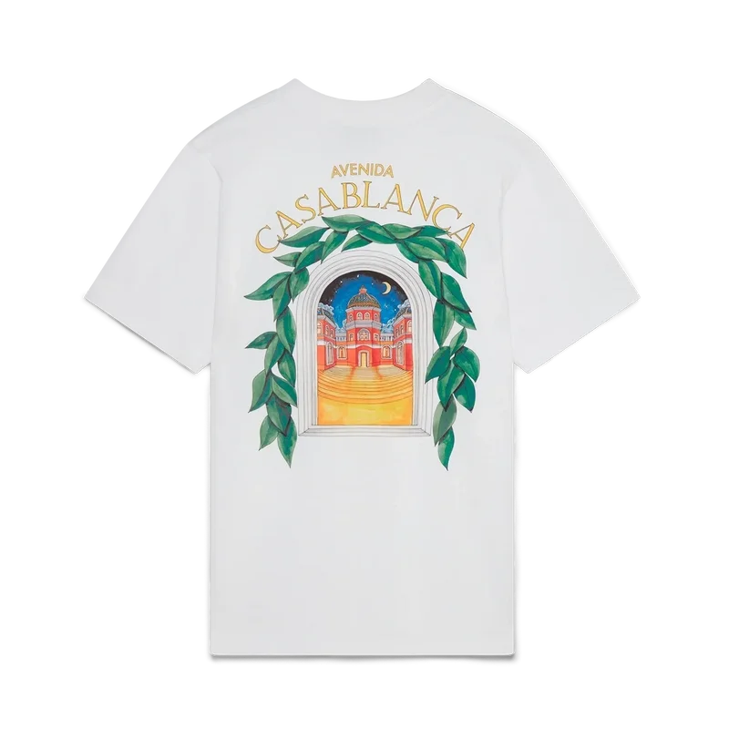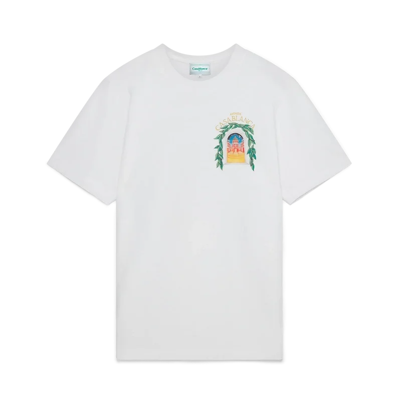 Das Casablanca Avenida T-Shirt in Weiß zeigt ein saisonales Siebdruck-Motiv, bei dem der freie Fluss der Natur auf die Struktur des von Menschenhand geschaffenen Designs trifft: den Bogen, ein abstraktes Symbol der Stärke. Abgerundet durch einen klassischen Rundhalsausschnitt, kurze Ärmel und ein Casablanca Paris-Markenlabel, entworfen für eine lockere Passform.