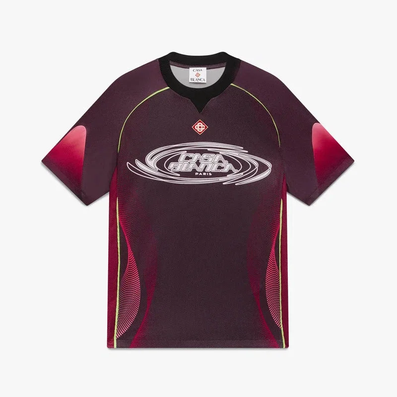Das Aubergine-Farbverlauf-Fußballtrikot mit kurzen Ärmeln besticht durch ein raffiniertes Design mit dem saisonalen Farbverlaufsmotiv, das die satten Farben der Aubergine nachahmt. Abgerundet wird es durch den charakteristischen Diamant-Logo-Aufnäher des Hauses und das Casablanca-Logo auf der Brust sowie einen klassischen Rundhalsausschnitt.
