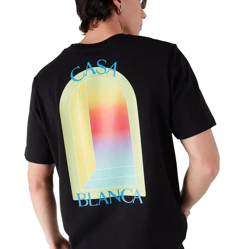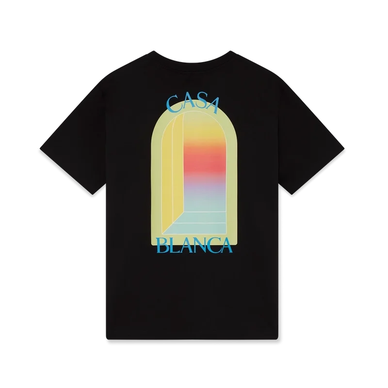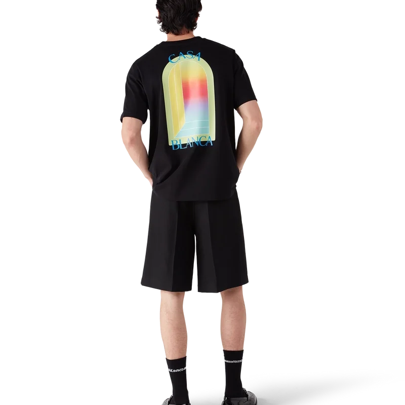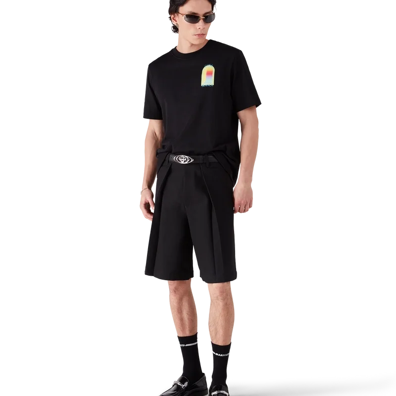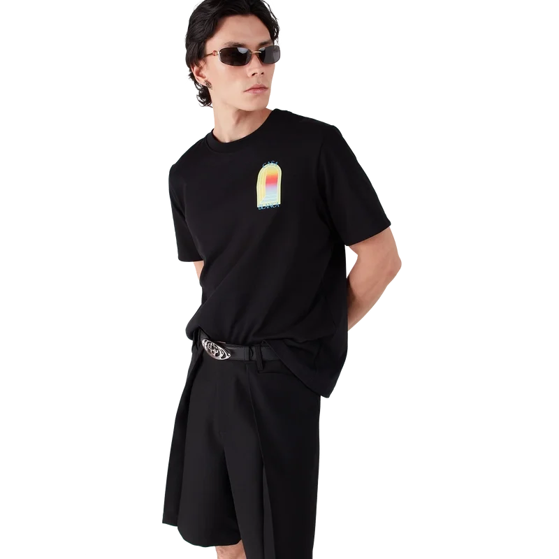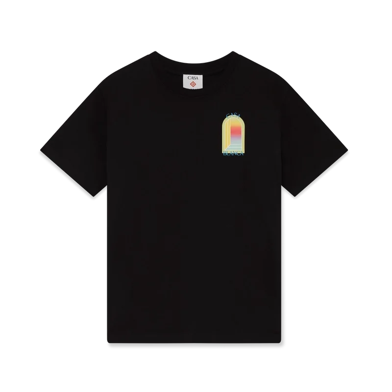 Das L’arche T-Shirt ist ein kurzärmeliges Modell mit einem charakteristischen Siebdruckmotiv des Bogens, einem abstrakten Symbol für Stärke, gefertigt aus Bio-Baumwolle. Mit geripptem Rundhalsausschnitt.
