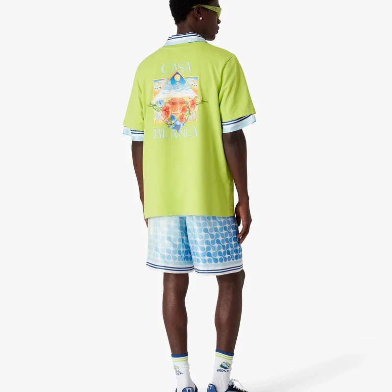 Das Lime Flower Court Icon Kurzarm-T-Shirt besticht durch ein raffiniertes Design mit einem Motiv, bei dem miteinander verbundene Rahmen Nischen mit verschiedenen Szenen bilden, die die Transzendenz von Zeit und Ort durch den Fokus auf den Sport beschreiben. Abgerundet wird das Design durch einen klassischen Rundhalsausschnitt und eine lockere Silhouette.