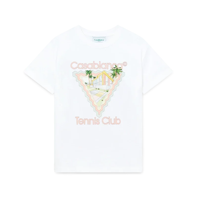 Das Maison De Reve T-Shirt ist ein bedrucktes Kurzarm-Design mit saisonalen Motiven, die Anspielungen auf ein Haus in Palm Springs aus der Mitte des Jahrhunderts enthalten, sowie charakteristischen Designelementen – Palmen und ein Tennisplatz mit von Memphis Wave inspirierten Details, die als grundlegendes Designelement dienen – in den Pastellfarben dieser Saison. Hergestellt aus Bio-Baumwolle, komplett mit klassischem Rundhalsausschnitt.