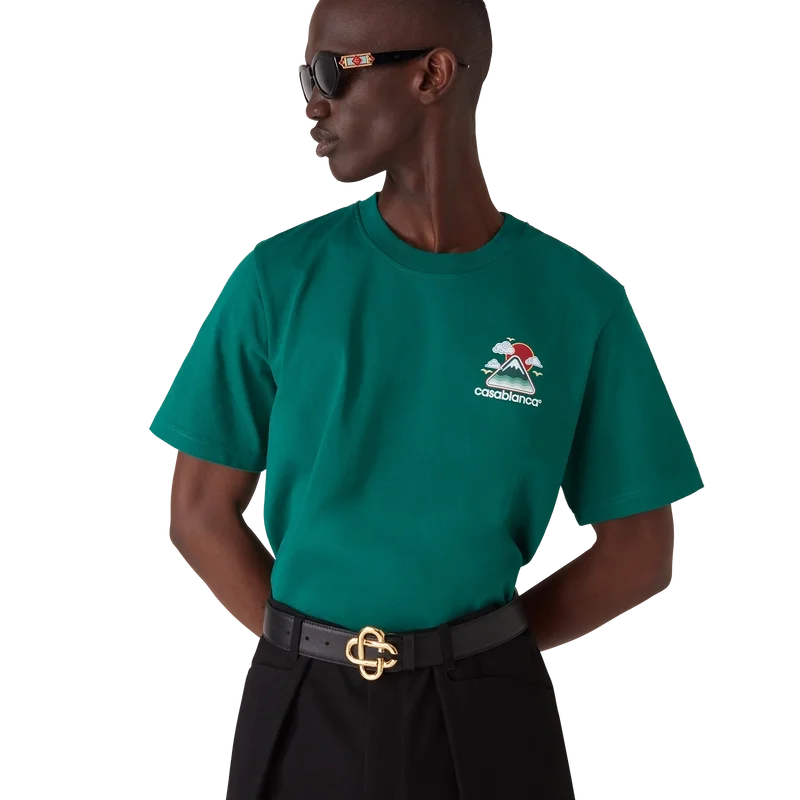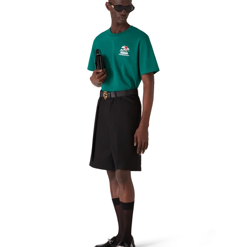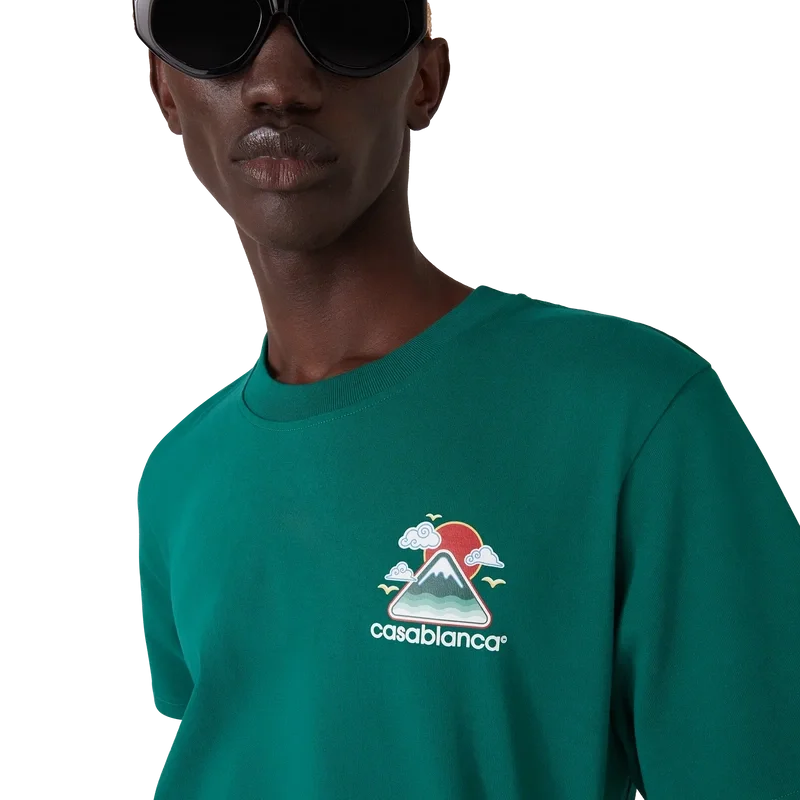 Das Montagne Ondulee T-Shirt ist ein kurzärmeliges T-Shirt mit Aufdruck, das saisonale Motive zeigt, die von Japans reichhaltiger Ikonografie als Inspiration für diese Kollektion geprägt sind. Mit seinem schlichten Layout und den Motiven vermittelt es eine starke visuelle Botschaft mit nur wenigen Linien und Farben und ist damit eines der Aushängeschilder der Kollektion. Es ist aus Bio-Baumwolle gefertigt und verfügt über einen klassischen Rundhalsausschnitt.