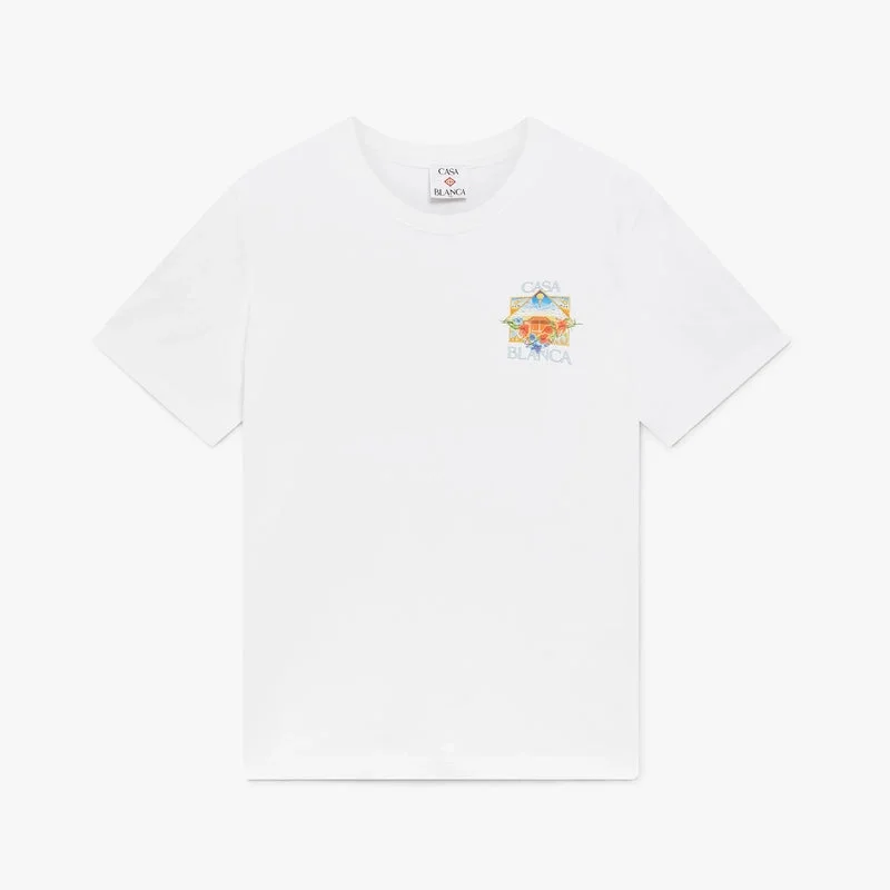 Das White Flower Court Icon Kurzarm-T-Shirt besticht durch ein raffiniertes Design mit einem Motiv, bei dem miteinander verbundene Rahmen Nischen mit verschiedenen Szenen bilden, die durch den Fokus auf den Sport die Transzendenz von Zeit und Ort beschreiben. Abgerundet wird das Design durch einen klassischen Rundhalsausschnitt und eine lockere Silhouette.